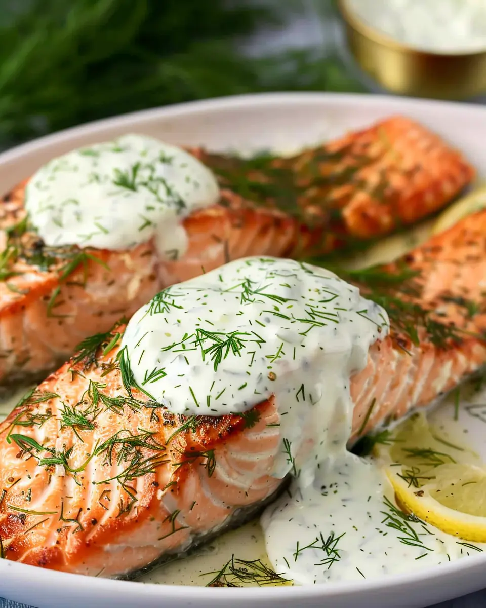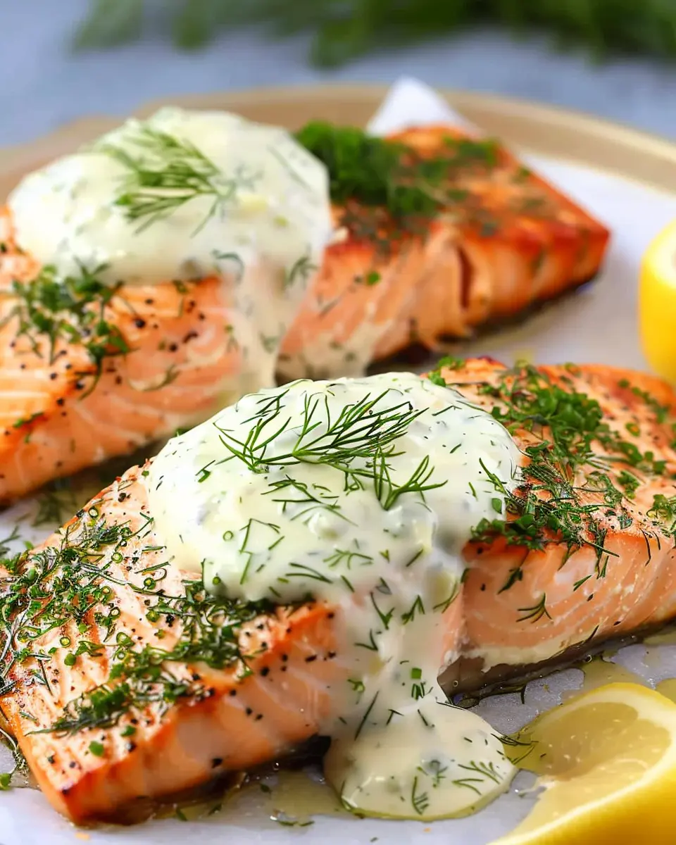 Keywords: Baked Keto Salmon, Creamy Dill Sauce, Low Carb Recipe