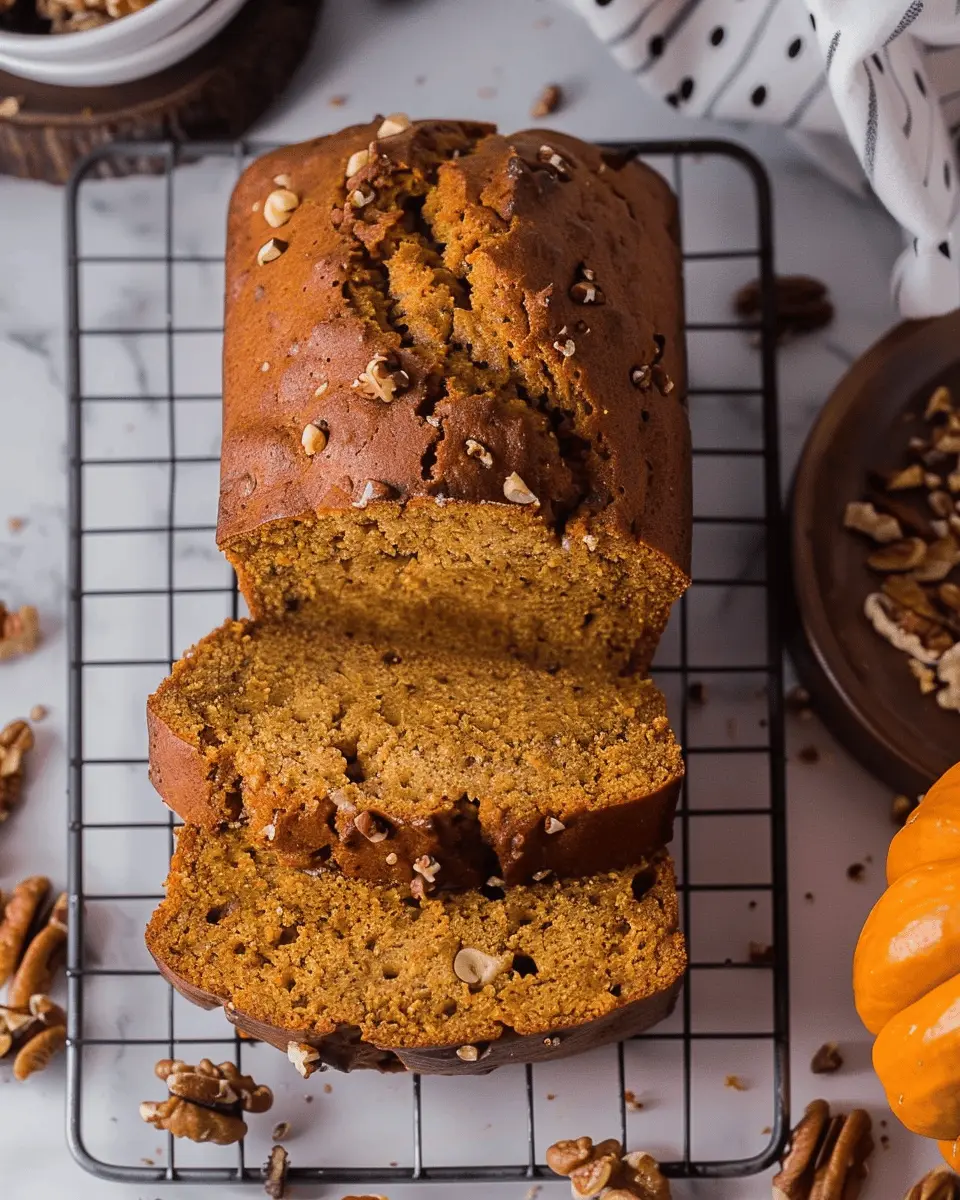 Once it’s done, let your pumpkin bread cool in the pan for about 10 minutes before transferring it to a wire rack to cool completely. The waiting might be the hardest part, but it’s worth it when you slice into that warm, spiced goodness.