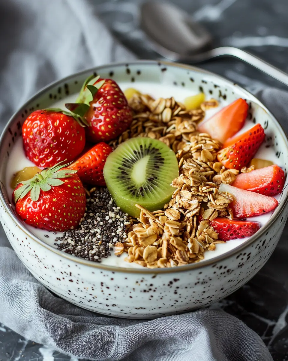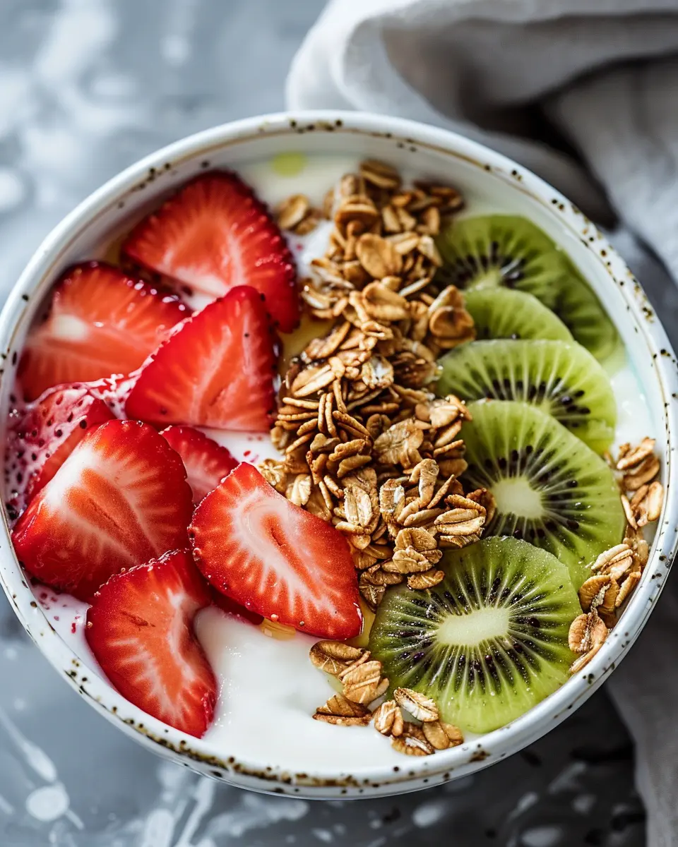 Getting your ingredients ready for the Strawberry Kiwi Yogurt Bowl takes just about 10 minutes. Simply slice up fresh strawberries and kiwis, and gather your yogurt and any toppings you want. Having everything prepped in advance makes morning assembly a breeze.