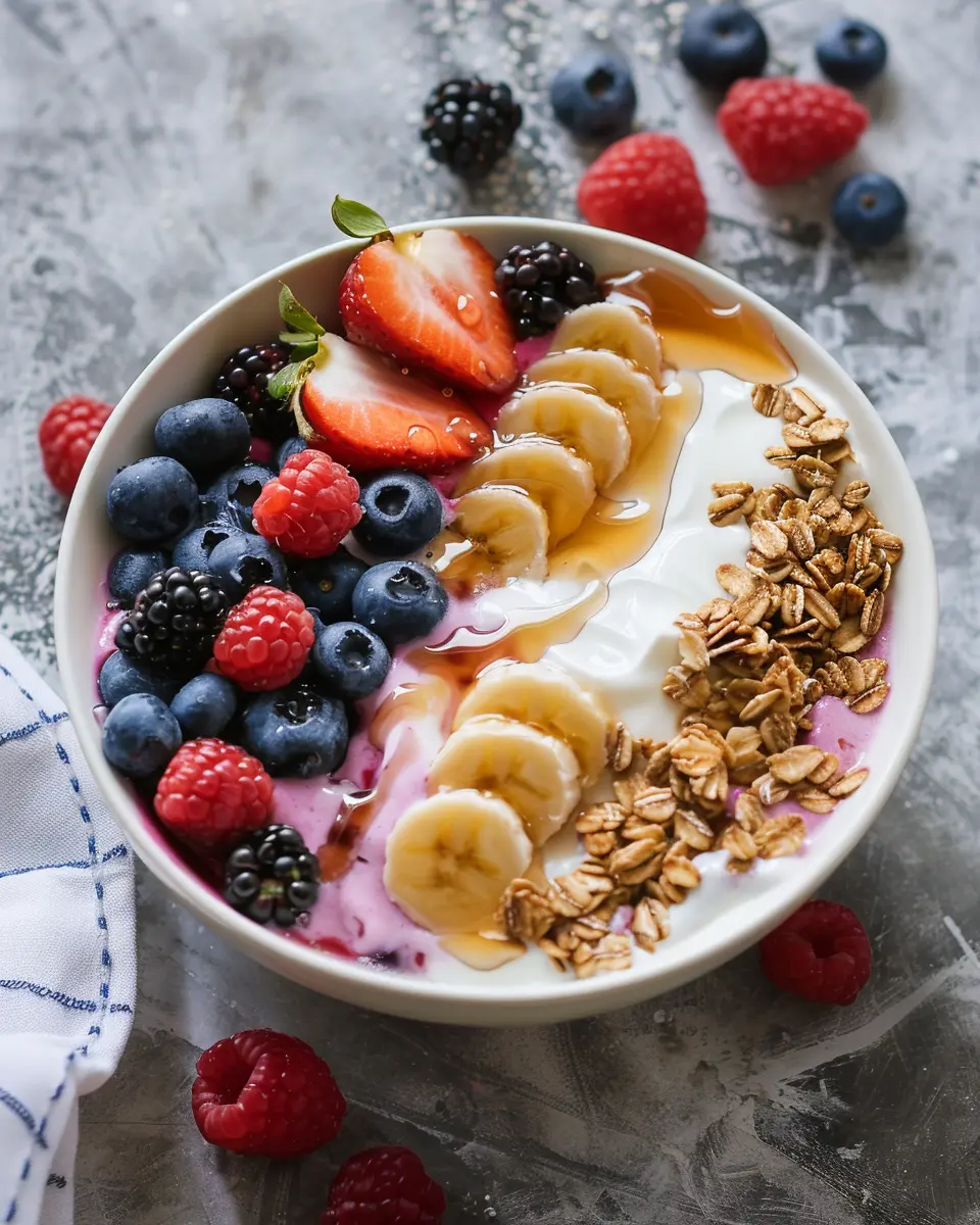 Crafting the perfect breakfast bowl is all about balancing flavor, texture, and nourishment. For your Berry Bliss Yogurt Bowl, gather the following essentials: