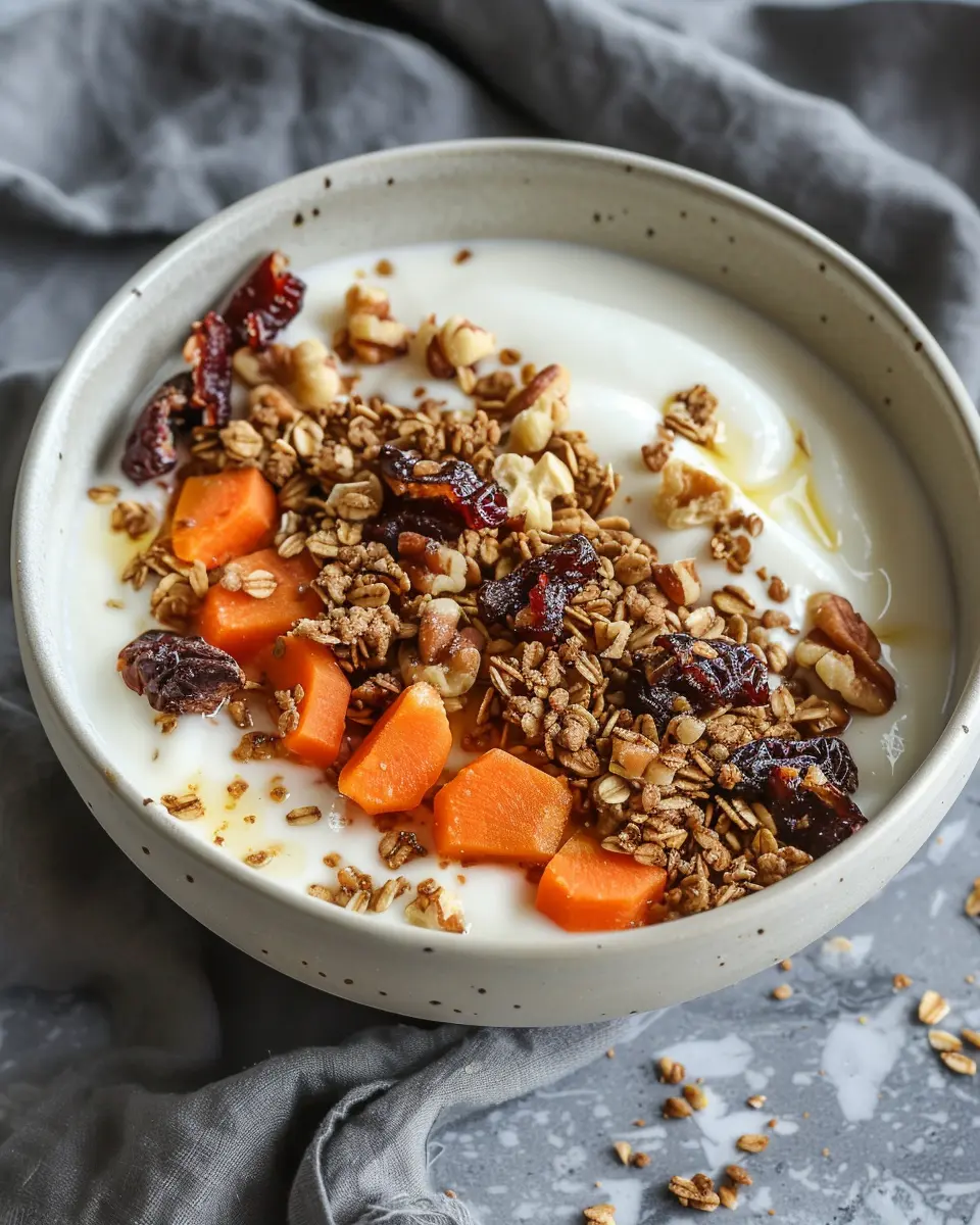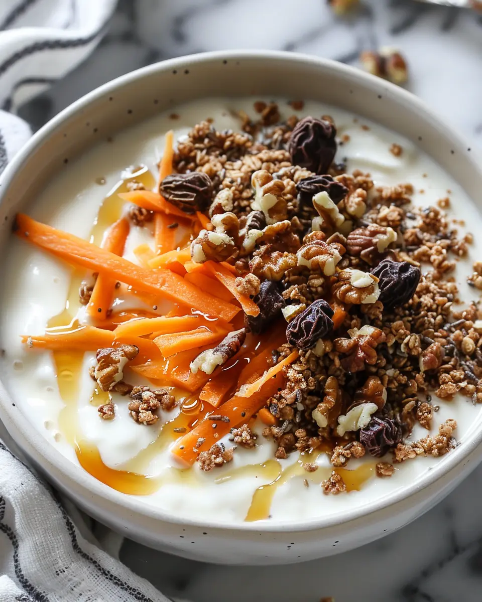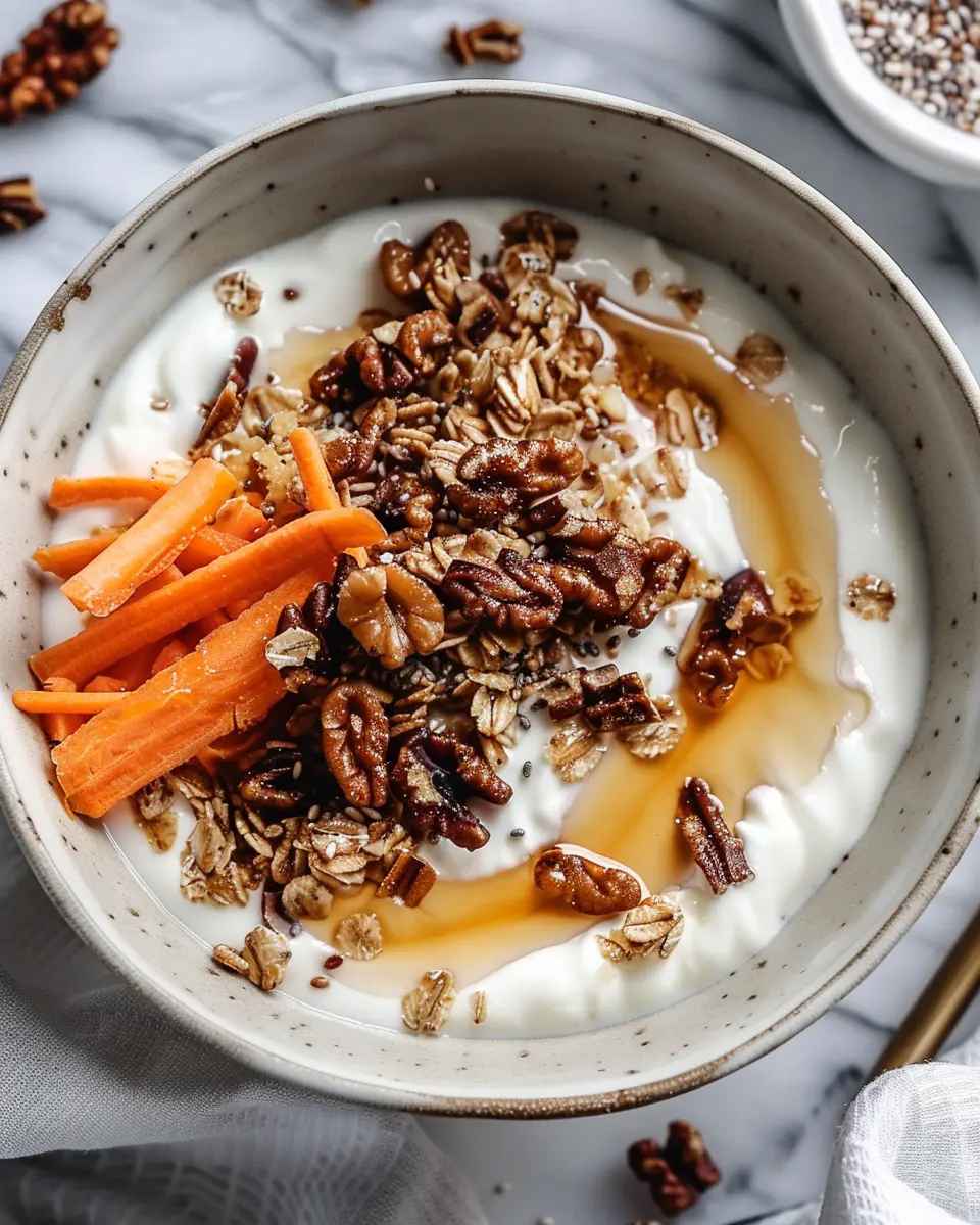 Indulge in a delicious and nutritious breakfast with this Carrot Cake Yogurt Bowl recipe, perfect for starting your day with a sweet twist.