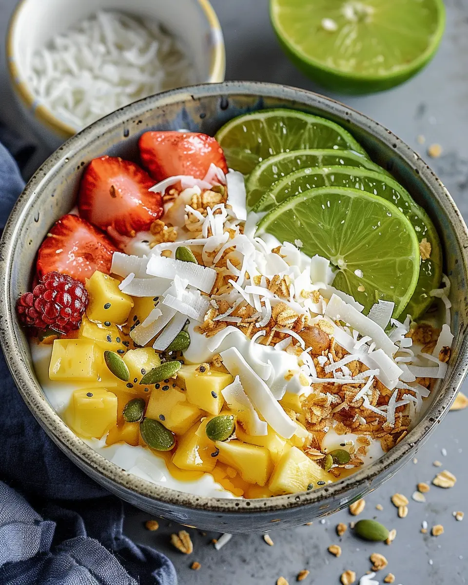 Start your day with a refreshing Coconut Lime Yogurt Bowl, a perfect mix of tropical flavors and creamy yogurt.