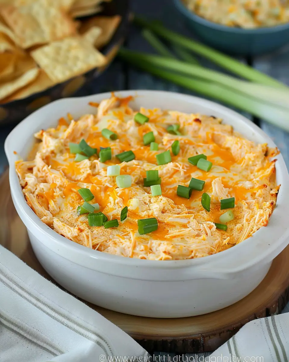 When it’s all bubbly and tantalizing, it’s time to serve! Scoop the Buffalo Chicken Dip in a Crock Pot into your favorite serving dish, and don’t forget to sprinkle some chopped green onions or crumbled Turkey Bacon on top for a fresh, savory finish.