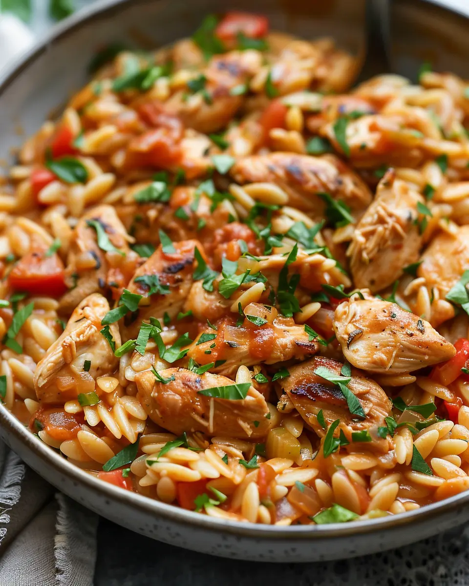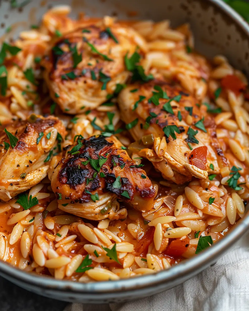 The delightful blend of spices, tender chicken, and creamy orzo is sure to impress! By the way, did you know that orzo can be a great source of carbohydrates for energy? This dish not only fills you up but also fuels you for whatever comes next.