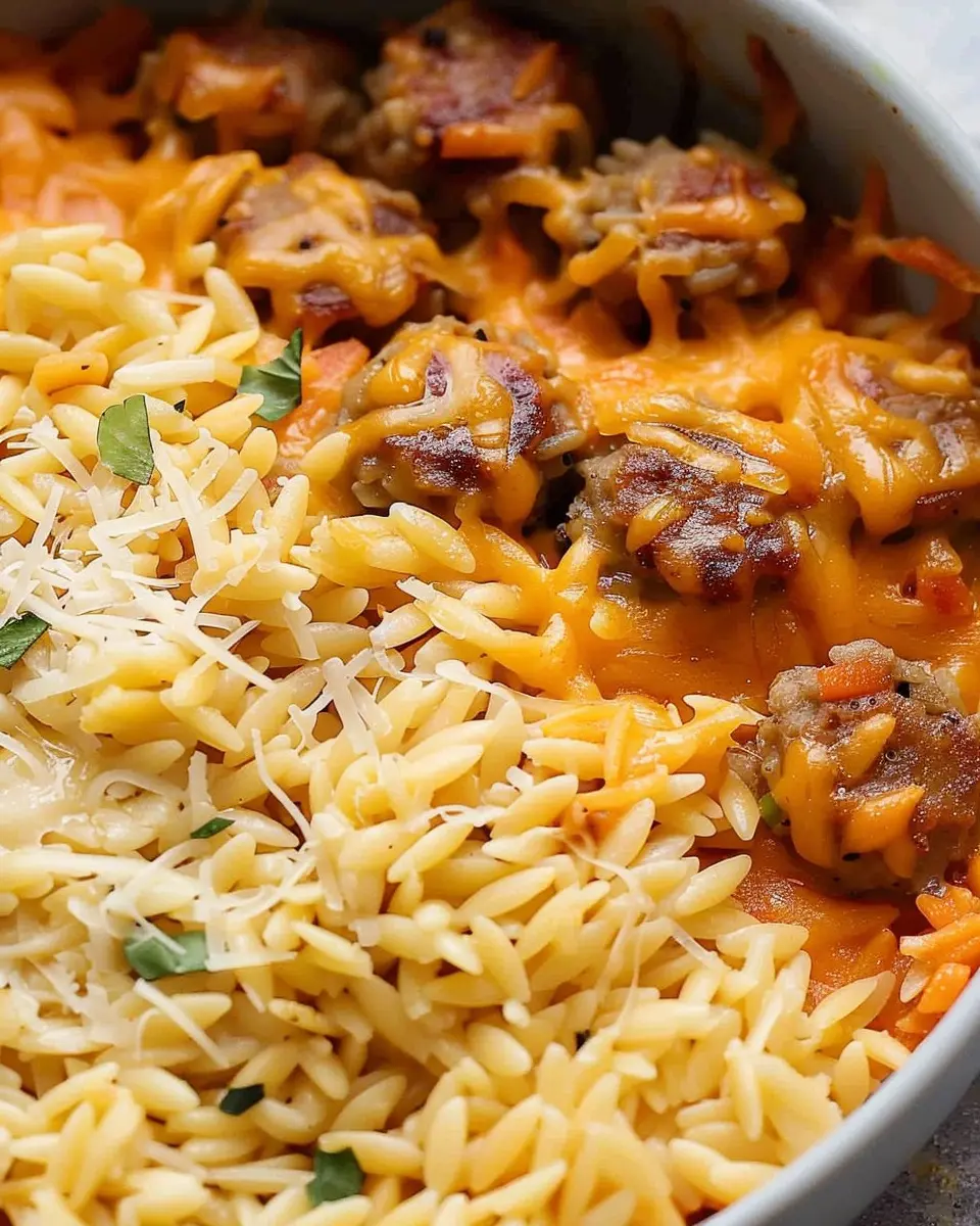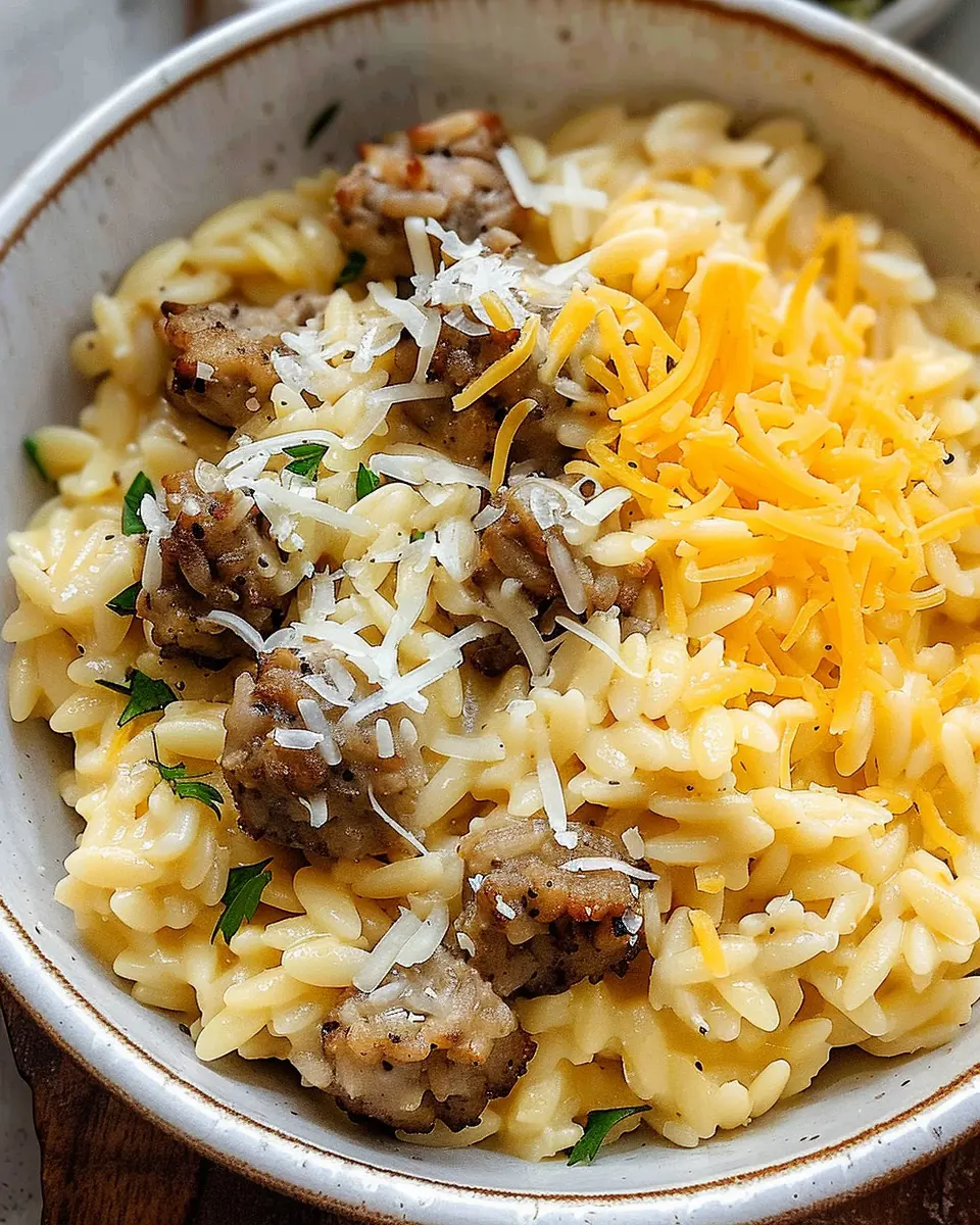 Pair it Well: This dish pairs beautifully with a simple side salad or steamed vegetables, offering a fresh counterpart to the rich flavors of the cheesy orzo.