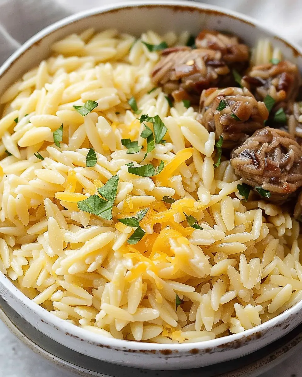 In conclusion, whether you seek a warm bowl of goodness after a hectic day or a delightful dish to share with friends, cheesy orzo stands out as a delightful choice. Ready to dive into this cheesy goodness? Check out the full recipe and get started!