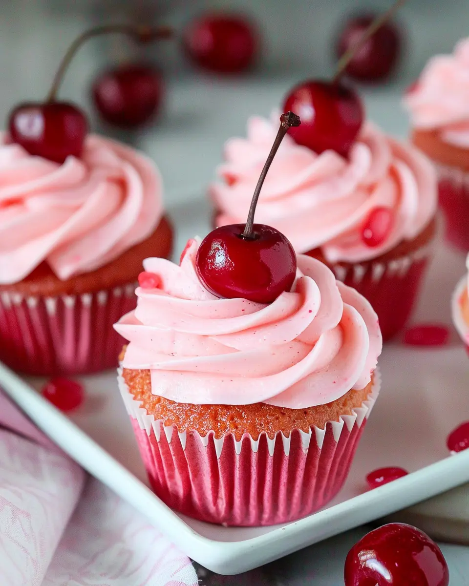 Not to mention, these cupcakes are visually striking. The vibrant red cherries nestled atop a fluffy, light base create a mouthwatering presentation. They’re perfect for any occasion—from birthday parties to cozy family gatherings or even just a lovely treat for yourself after a tough week.