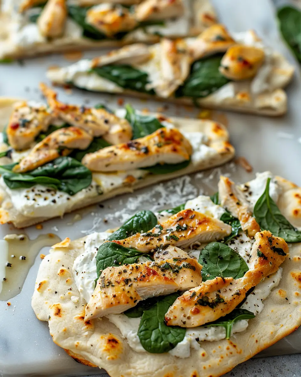 Step-by-step preparation of Chicken and Spinach Flatbread