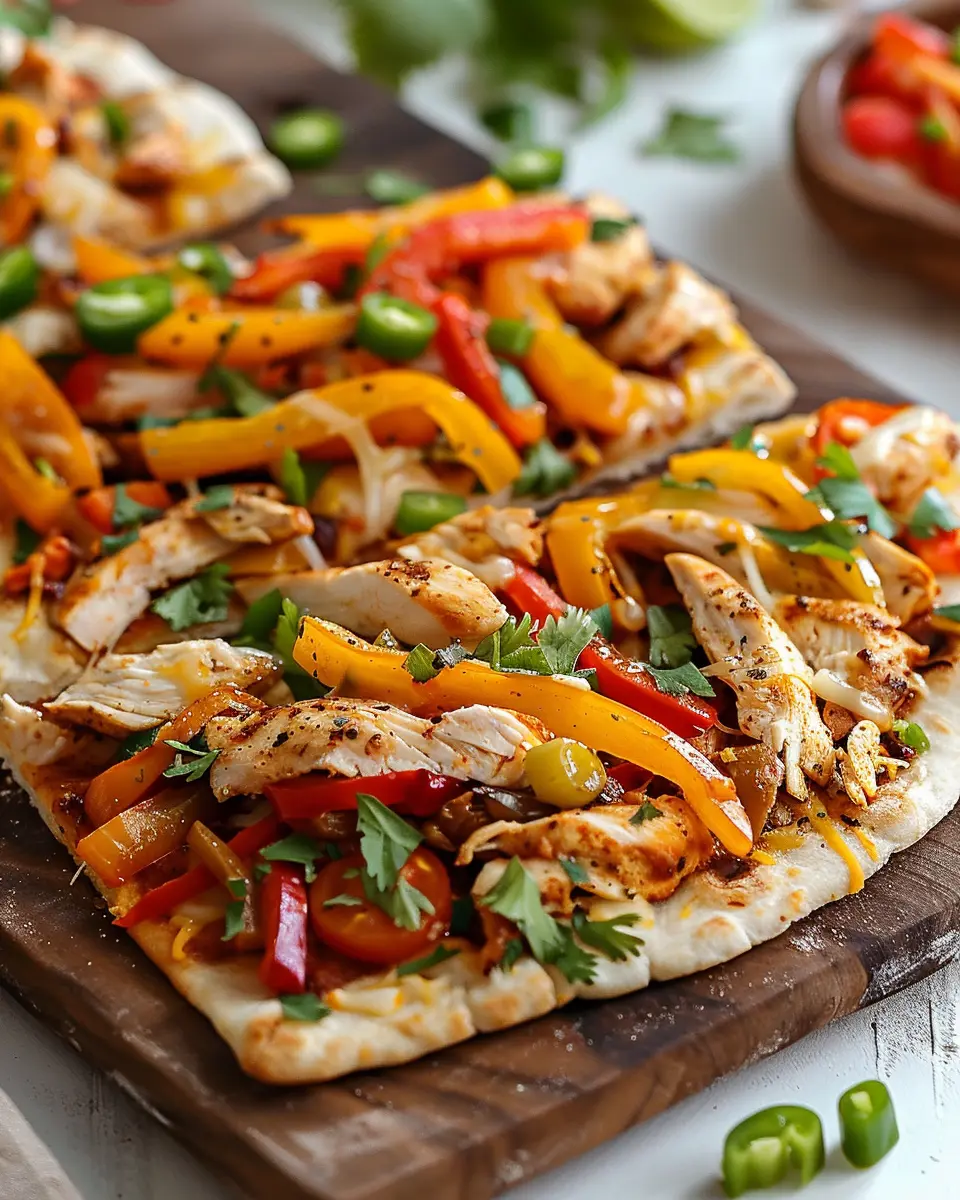 Making Chicken Fajita Flatbread has never been easier, and it’s a fantastic dish for meal prep or a quick weeknight dinner. The combination of tender chicken, vibrant vegetables, and the perfect flatbread base creates a masterpiece that tantalizes your taste buds. Let’s dive into each step to ensure your flatbread is simply unforgettable!