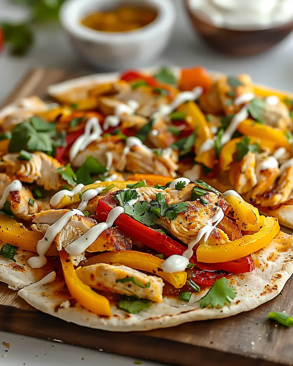 PrintChicken Fajita Flatbread: The Easy, Flavorful Family Favorite