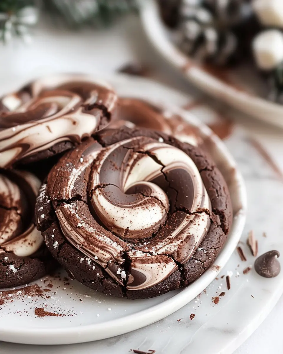 Indulge in the festive spirit with these delightful Chocolate Marshmallow Swirl Cookies, perfect for the holiday season.