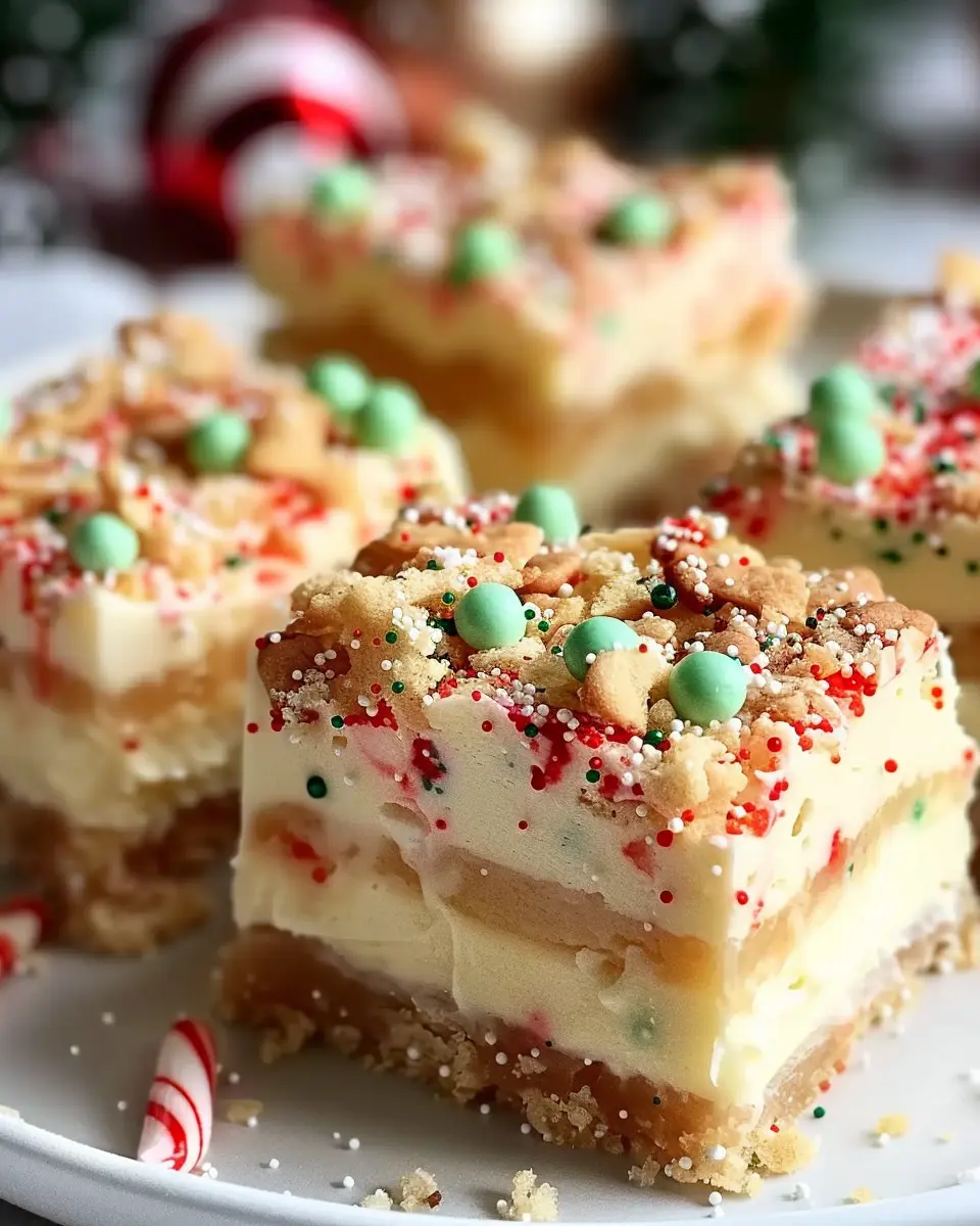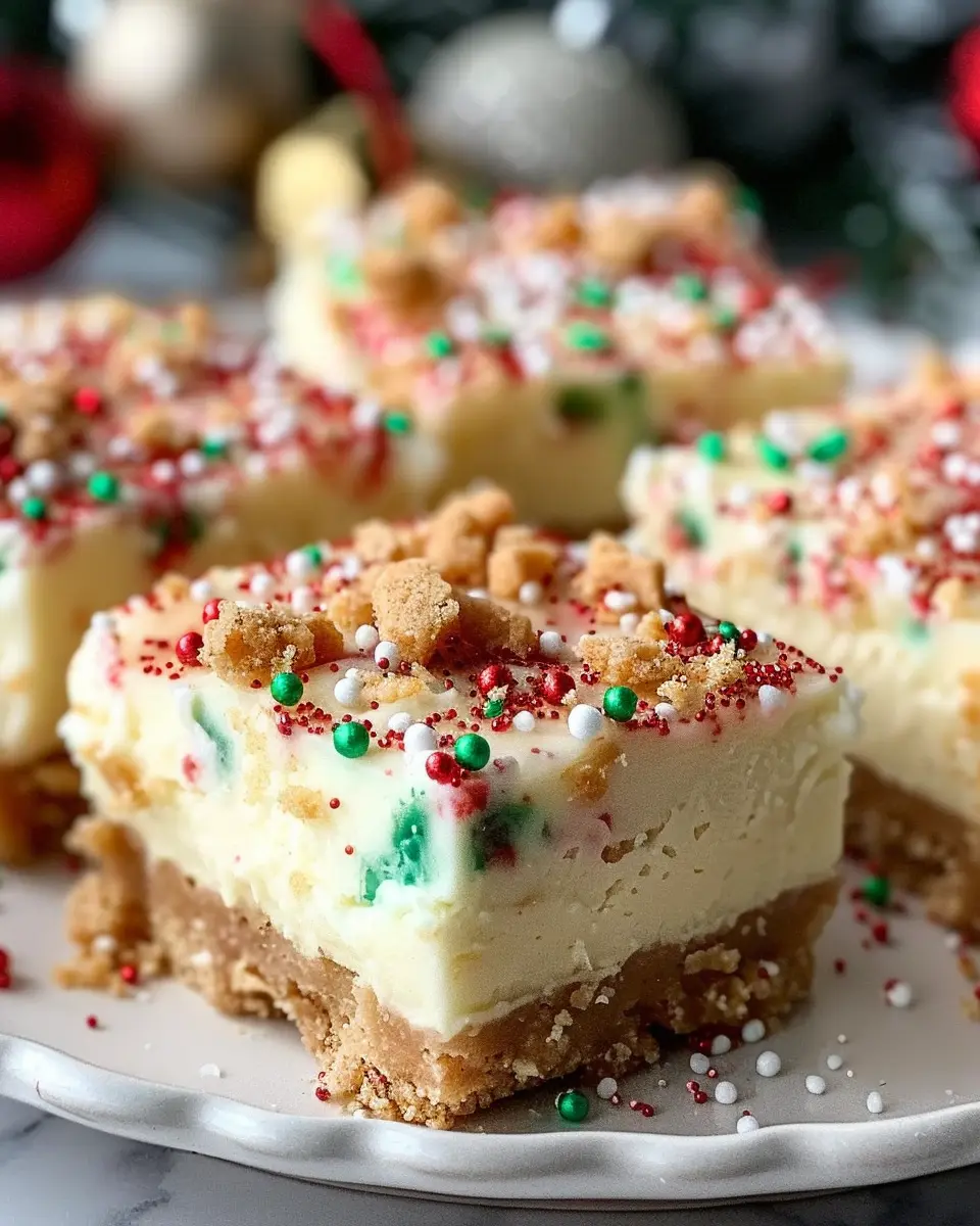 Christmas cookie recipes holiday: Indulgent No-Bake Sugar Cookie Cheesecake Bars
