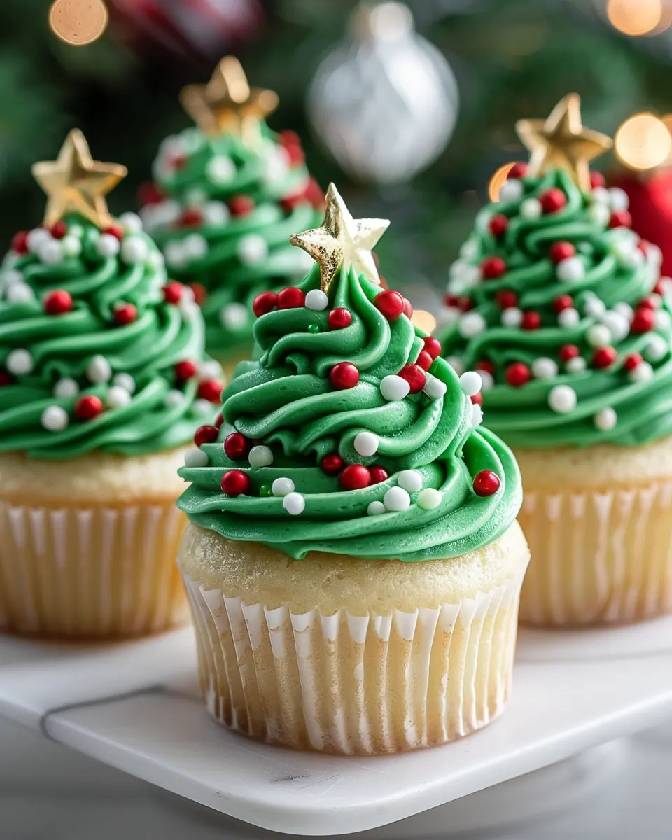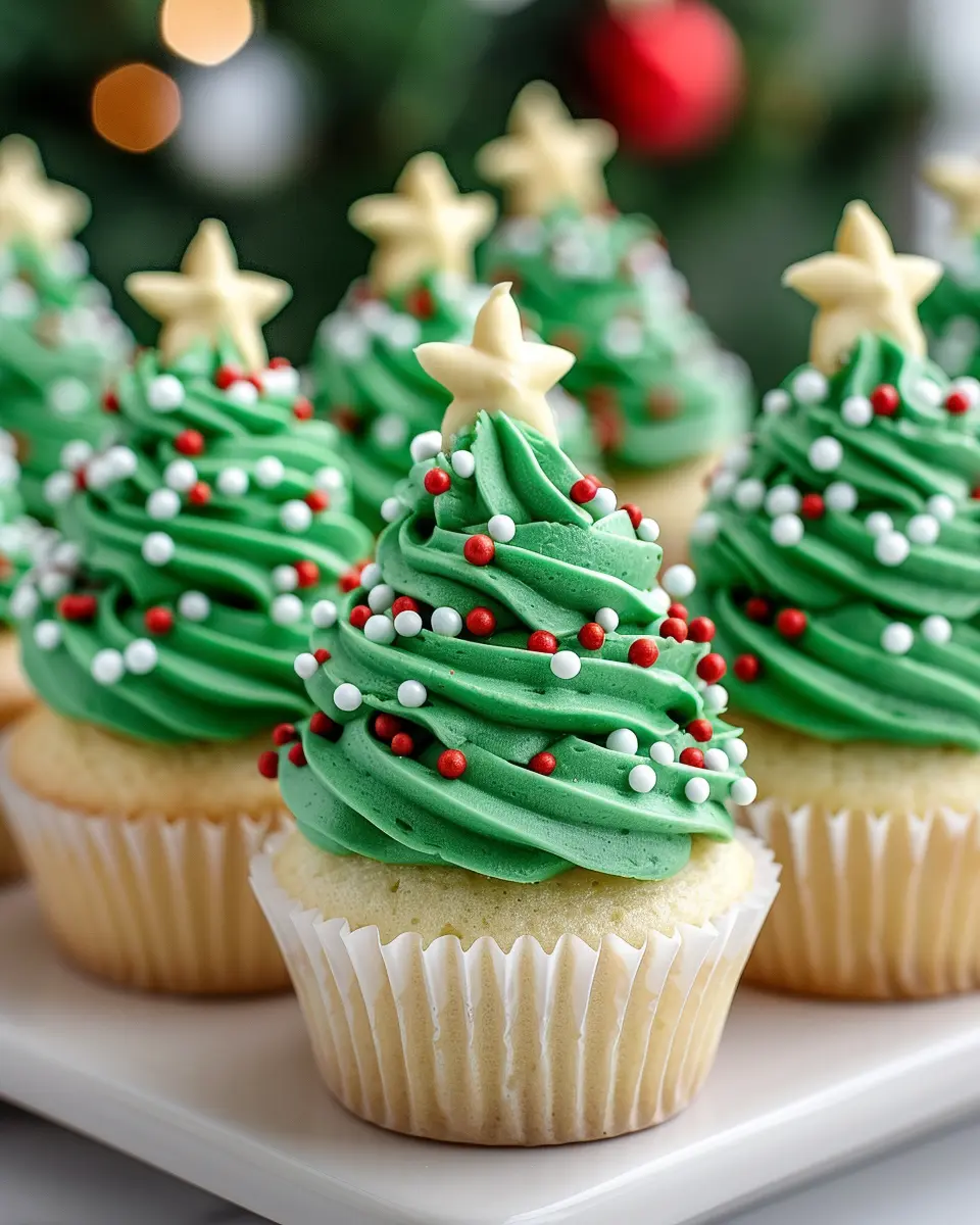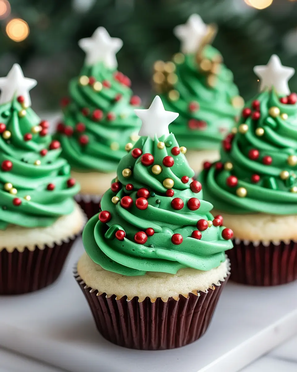 Delight your guests with these charming Christmas Tree Cupcakes, perfect for the festive season.