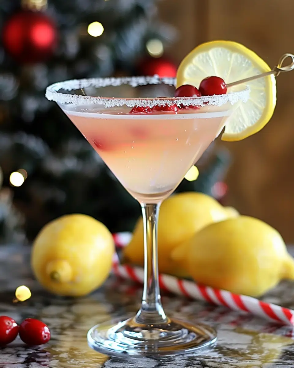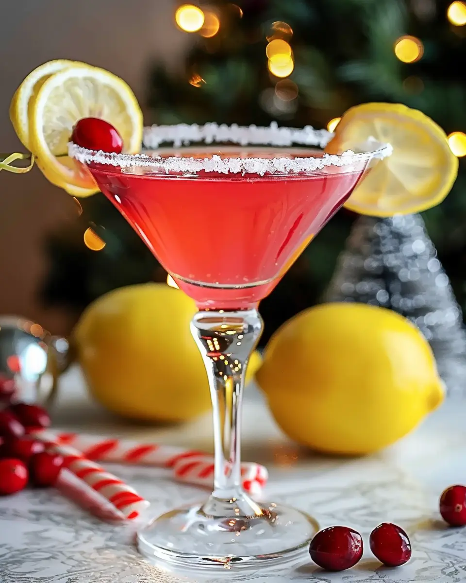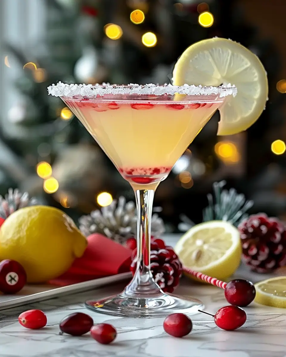 A delightful holiday cocktail blending tart cranberry and zesty lemon flavors, perfect for Christmas celebrations.