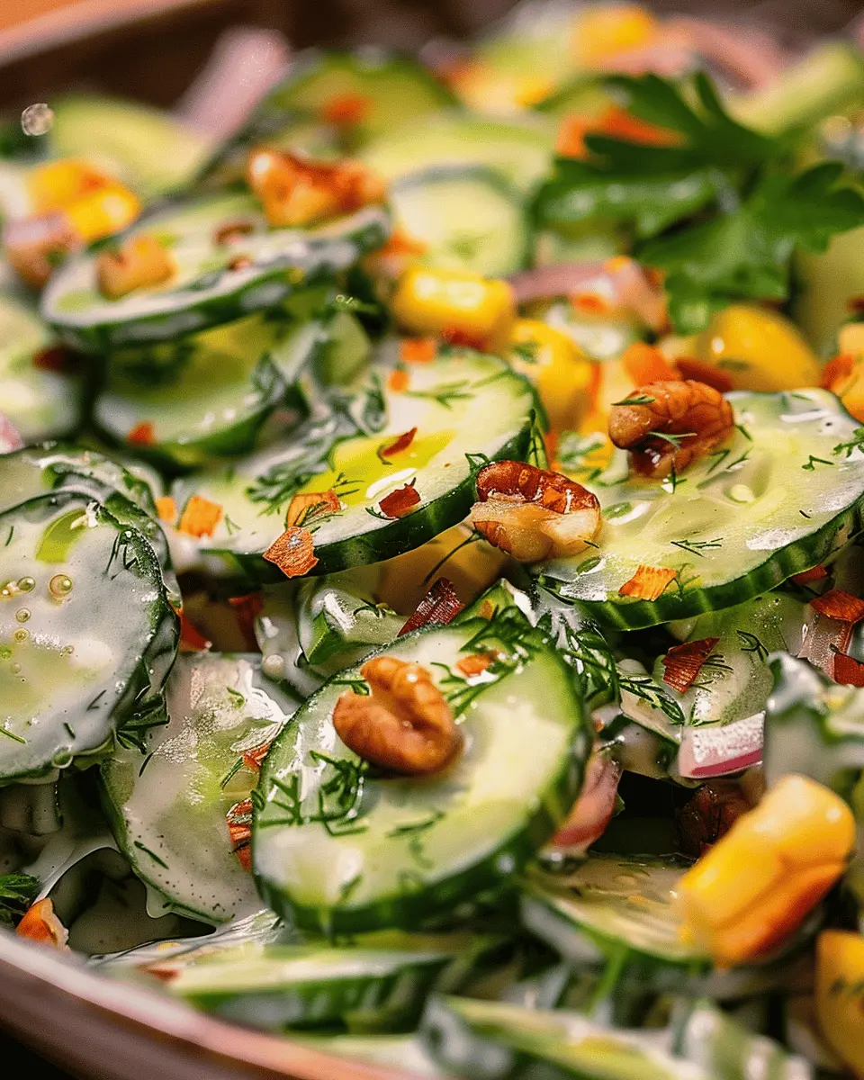 Looking for more delicious salad recipes ideas? Think about pairing your cucumber salad with some tasty side dishes. Grilled chicken with a zesty marinade or roasted veggies can enhance the flavors of your salad. And if you’re in the mood for a hearty side, opt for a quinoa pilaf or a light soup, such as a refreshing tomato gazpacho. Not only will these options make your meal more filling, but they’ll also keep things vibrant and nutritious. The combination is sure to impress friends at your next gathering!