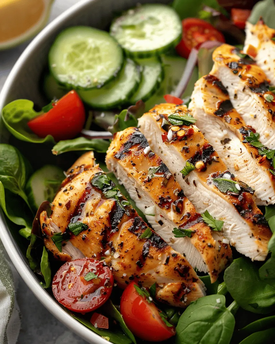 • Protein Perfection: Slice your grilled chicken breasts and arrange them artfully on your salad.
