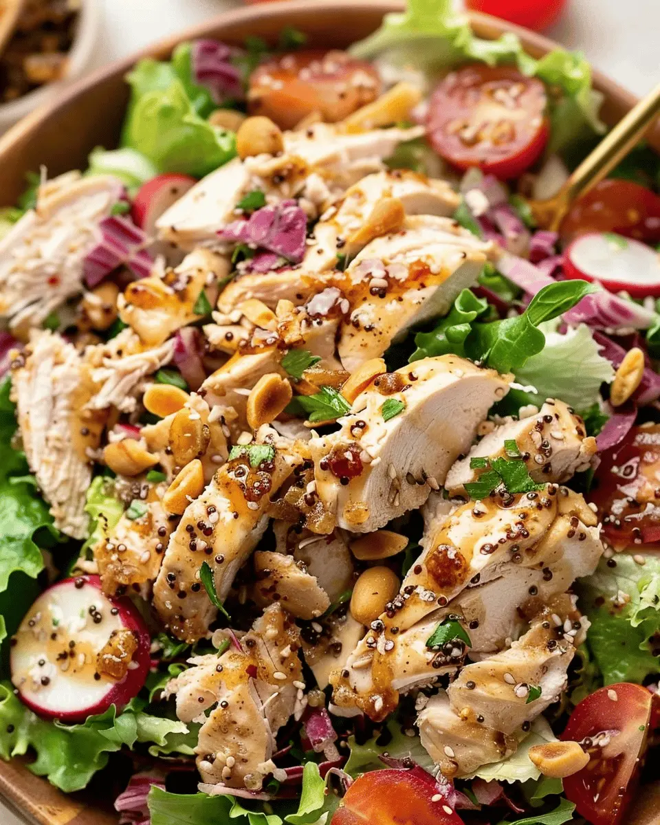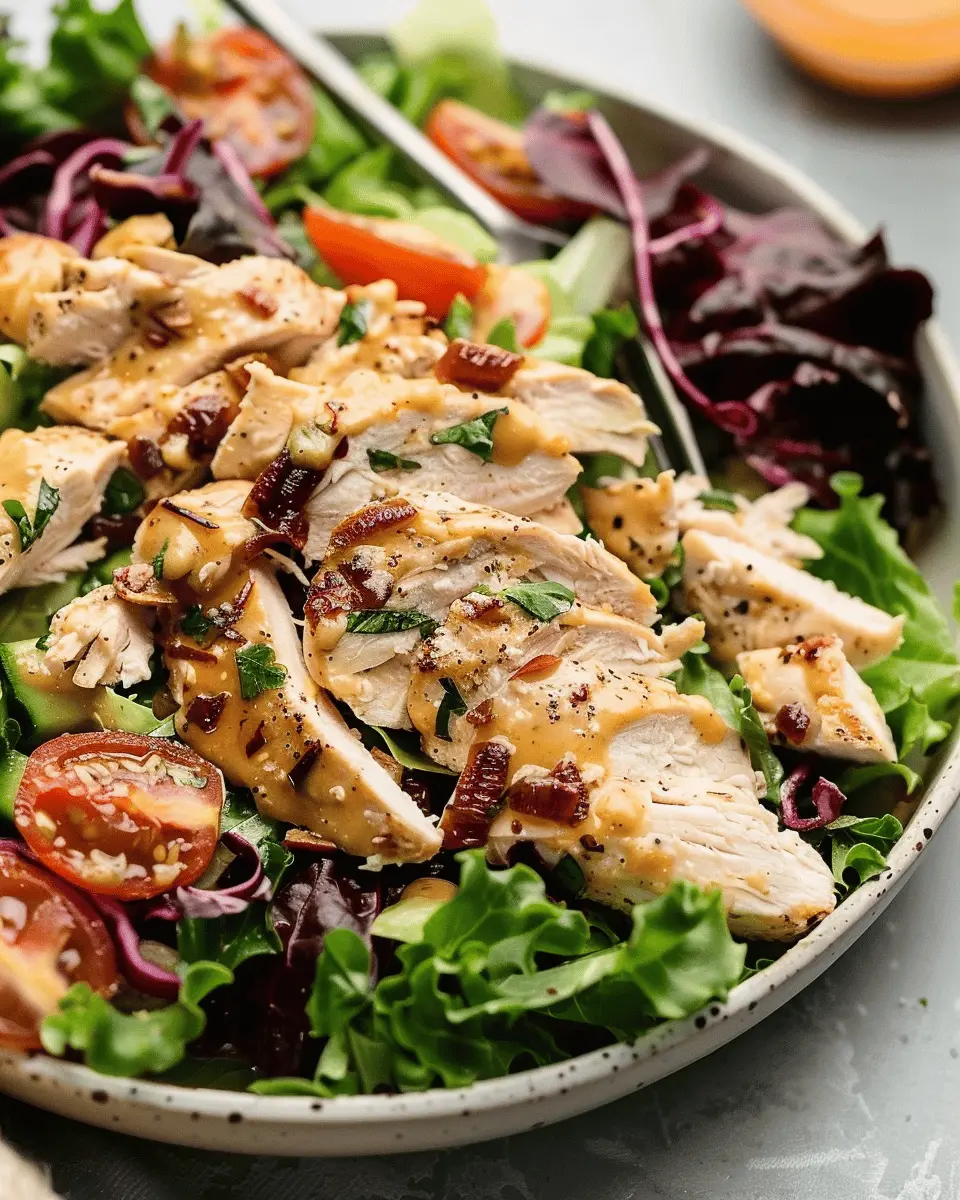 No salad is complete without a fantastic dressing. A tangy honey mustard dressing pairs beautifully with your ingredients. You might also explore a balsamic vinaigrette or a creamy avocado dressing for different flavor profiles. The right dressing can elevate your salad and make it feel like a gourmet dish. Explore the world of homemade dressings on Serious Eats for more inspiration!