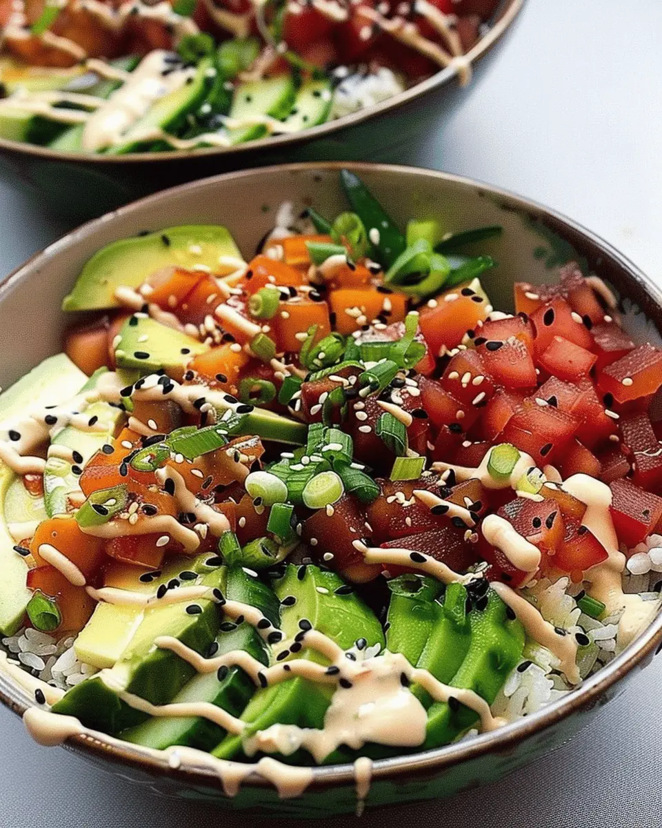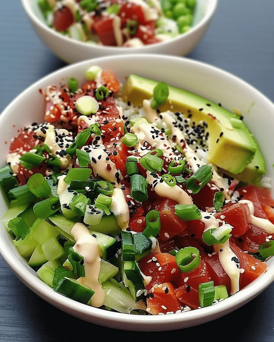 A good dressing ties everything together. Opt for a zesty sesame vinaigrette or a creamy avocado-based dressing to complement the bowl’s flavors. Top it off with sliced green onions or a sprinkle of sesame seeds to enhance both taste and texture.