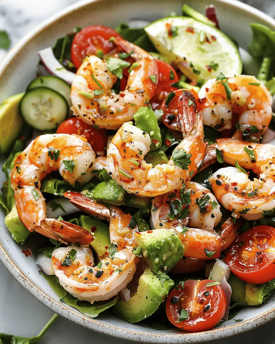 A refreshing and vibrant shrimp and avocado salad, perfect for spring!