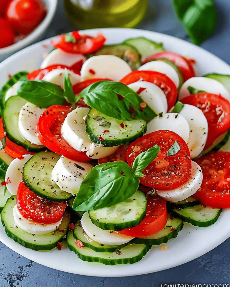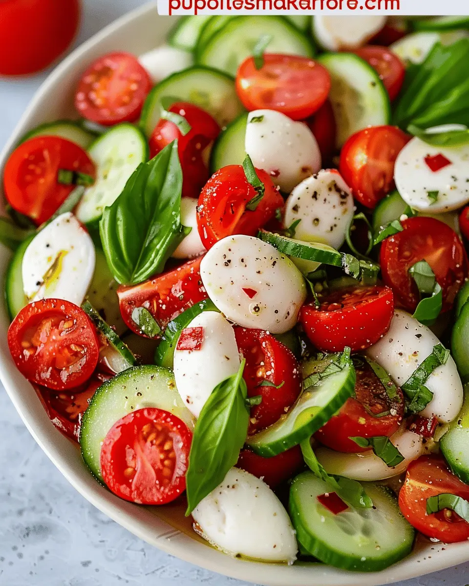 A refreshing and delicious Cucumber Caprese Salad recipe that combines fresh ingredients for a perfect summer dish.