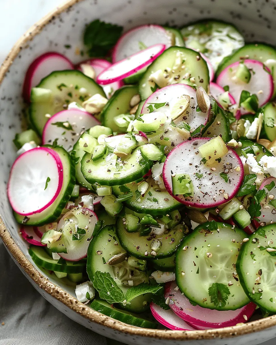 A refreshing and healthy salad recipe featuring crunchy radishes and cucumbers.