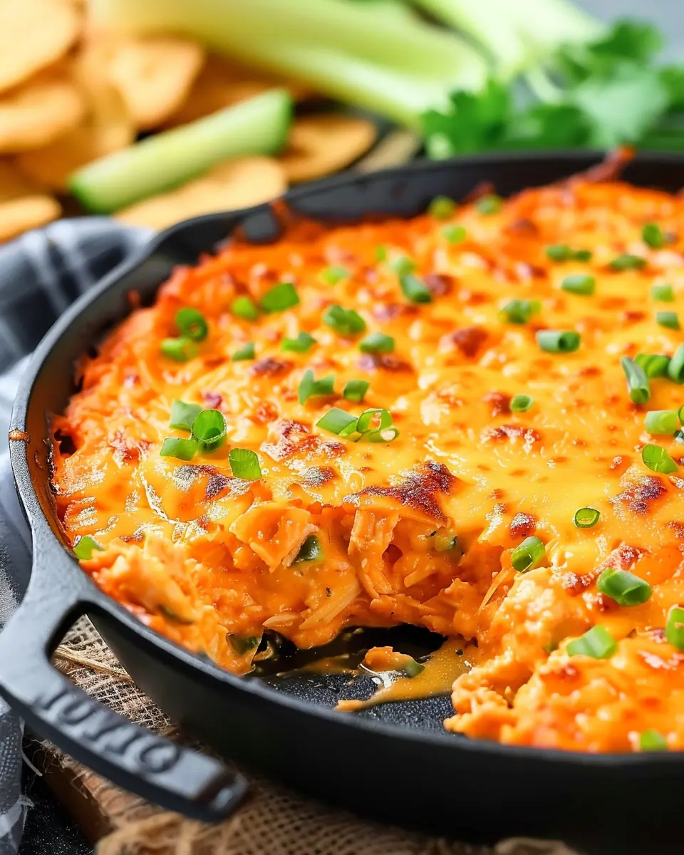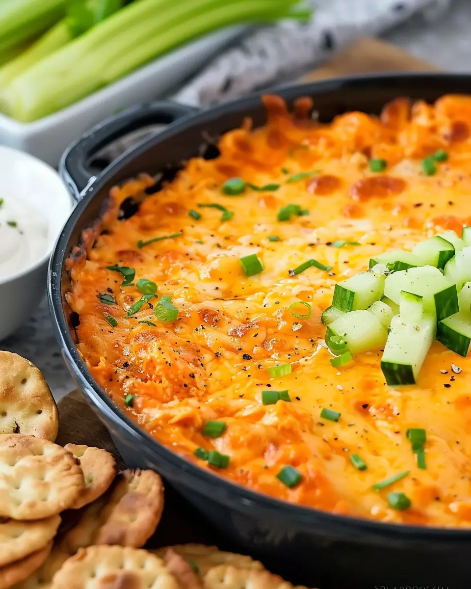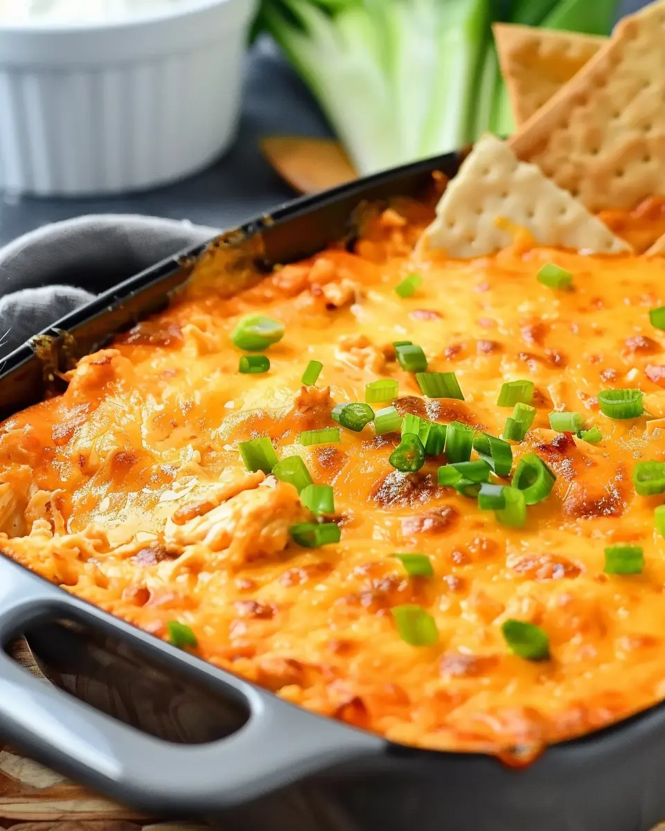 The final step? Enjoy! Once your easy buffalo chicken dip is out of the oven, let it cool slightly before serving. You can garnish it with additional chopped green onions for that pop of color and freshness.