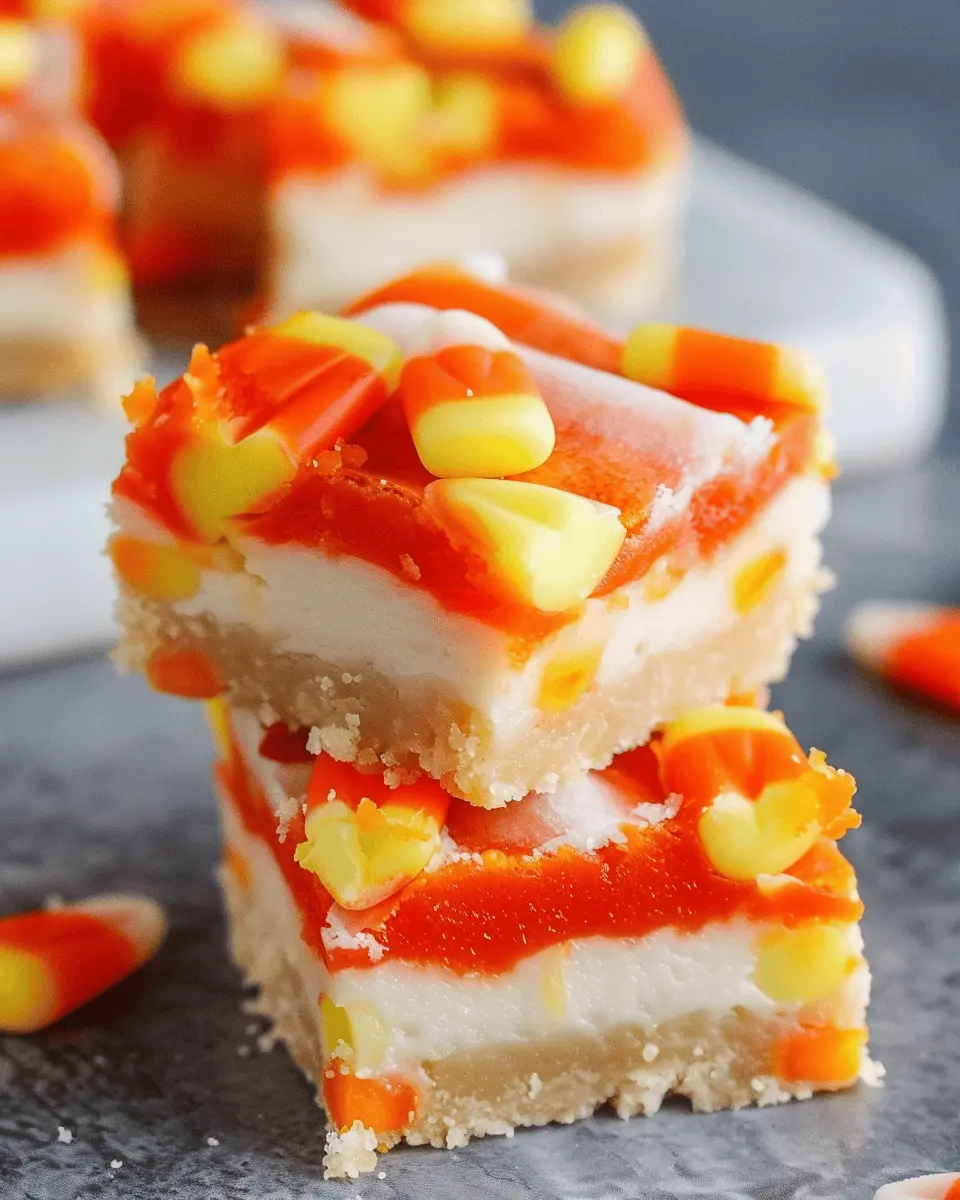 - Candy Corn Cookie Bars: These delightful treats are easy to whip up and perfectly fit the Halloween vibe.