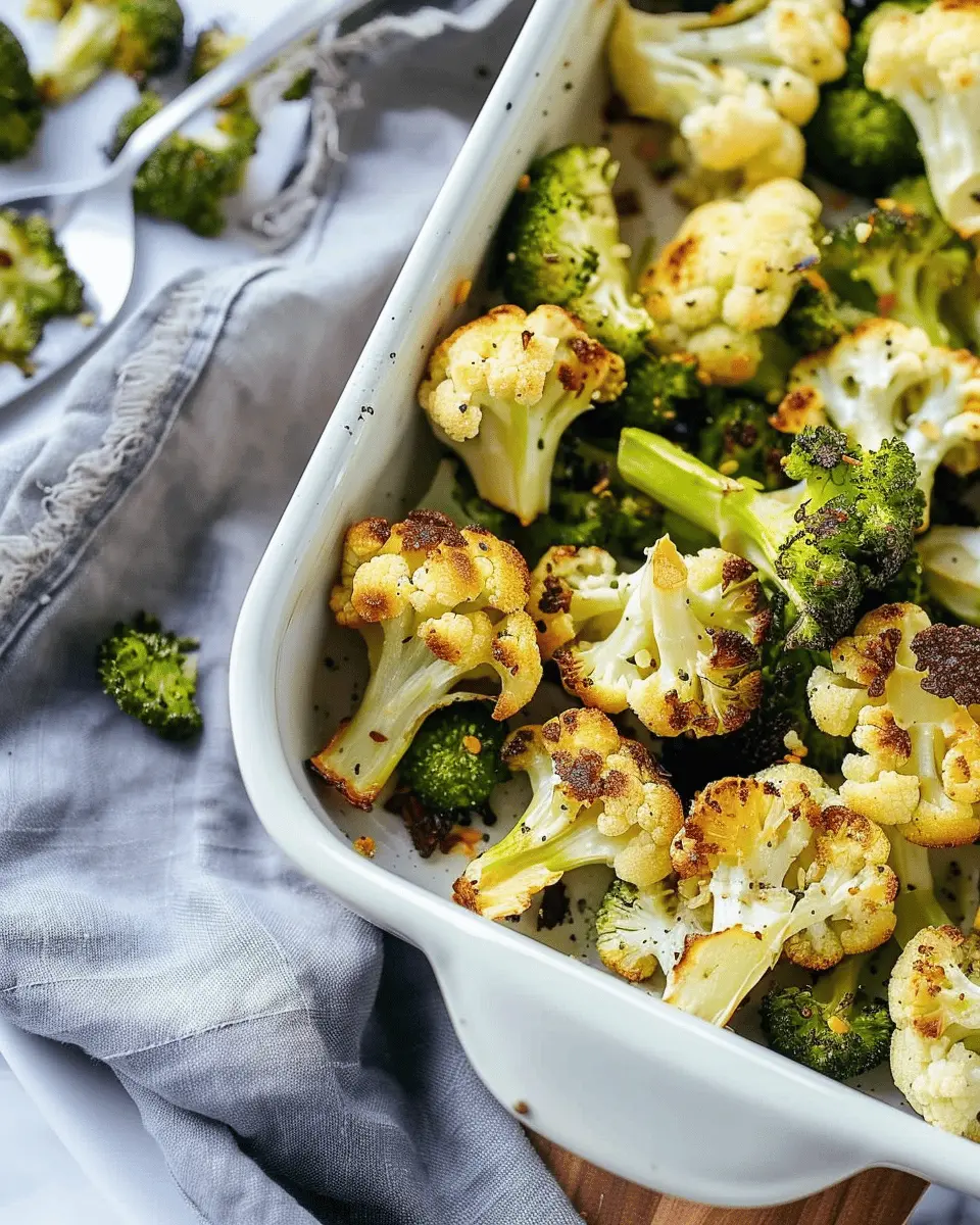 Presentation can make a simple dish feel special. Once your roasted broccoli and cauliflower are perfectly cooked, transfer them to a serving platter. Here are a few quick tips for plating: