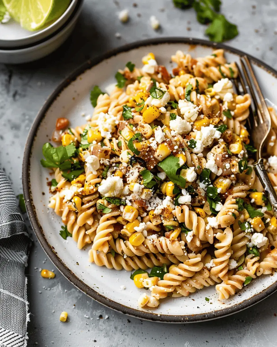 Discover the vibrant flavors of Mexican street corn in this easy pasta salad, perfect for any meal.