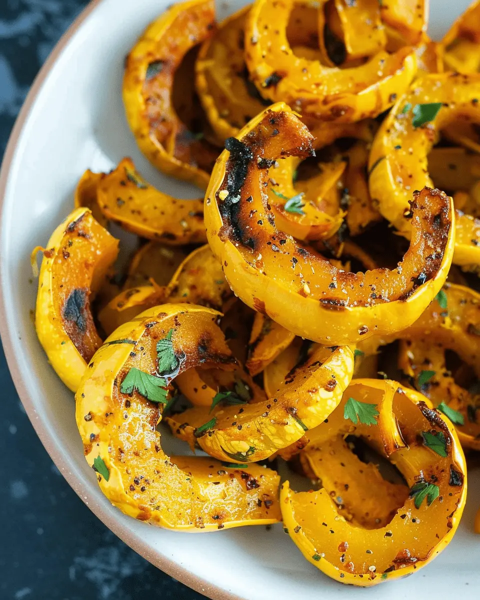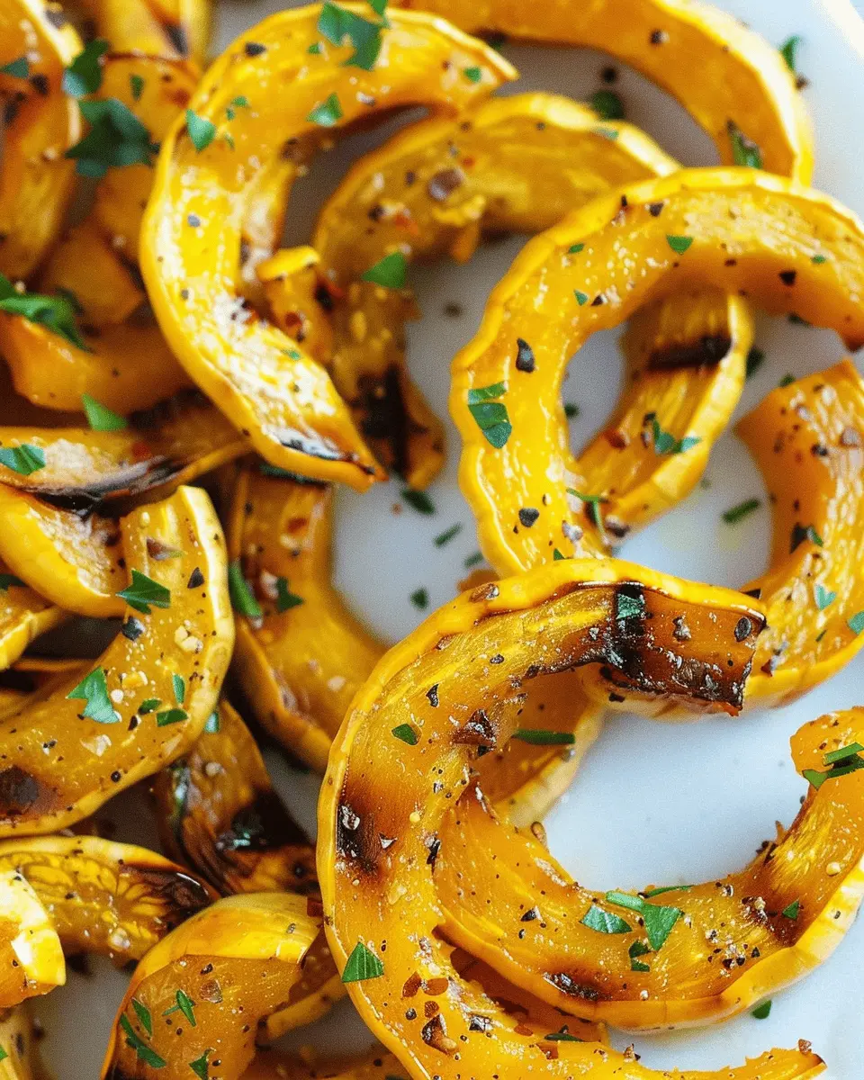 As busy young professionals, incorporating easy side dishes like this into your routine can save you time while impressing your friends and family. Plus, the versatility of delicata squash means it pairs wonderfully with various main courses—be it a juicy chicken breast or herb-seasoned turkey bacon. Give it a try and elevate those weeknight dinners effortlessly!