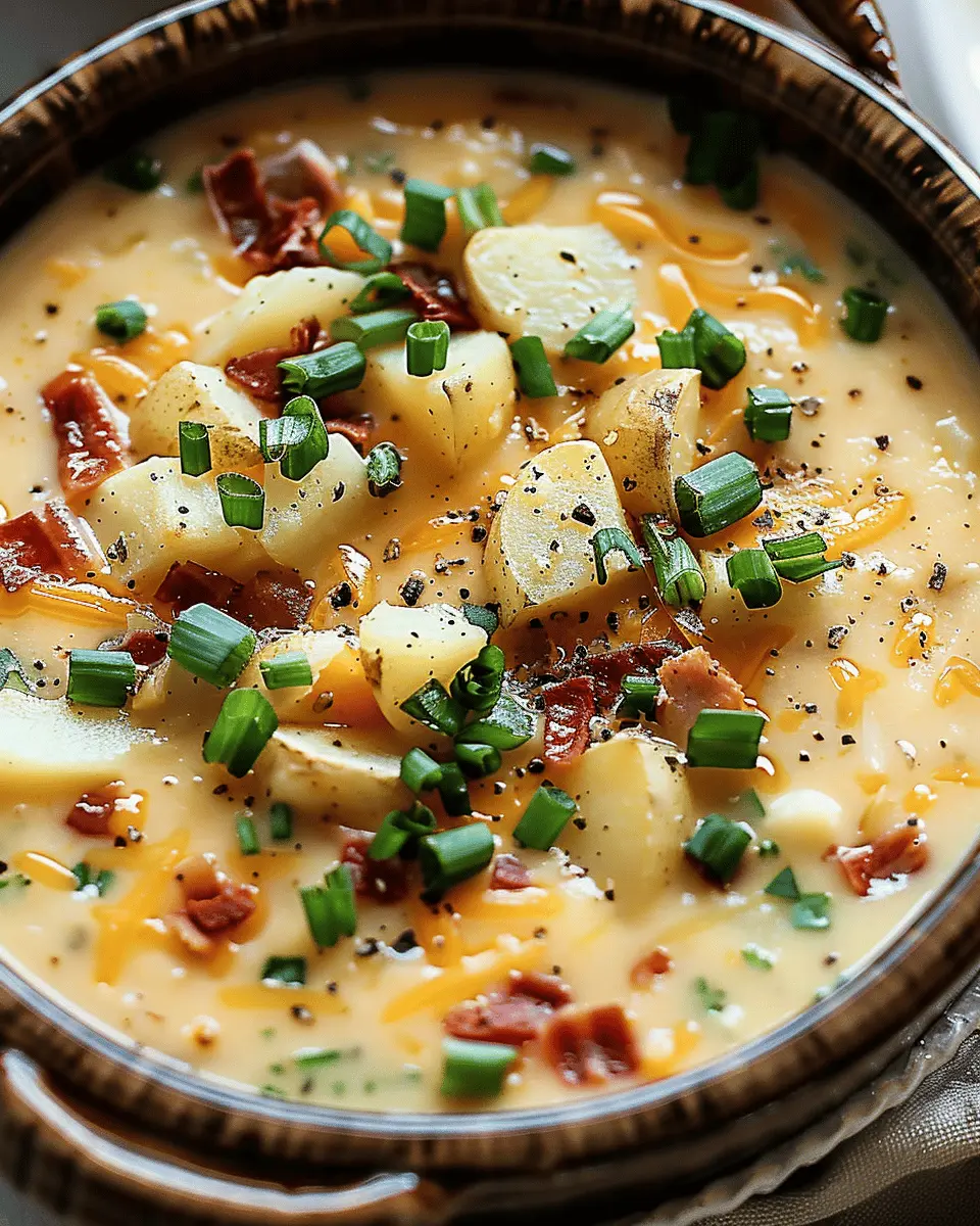 A delicious and comforting crockpot potato soup featuring turkey bacon, perfect for easy weeknight dinners.
