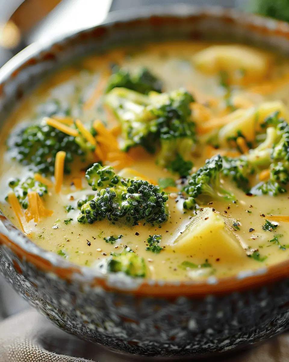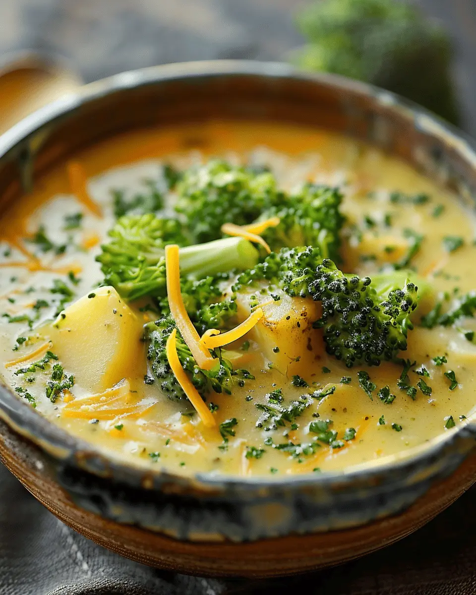 Imagine a thick, creamy soup loaded with tender broccoli florets and rich cheddar cheese. This variation enhances the base of our original recipe by adding a splash of heavy cream and a touch of garlic for depth of flavor. To make it even heartier, consider incorporating some cooked turkey bacon bits for a smoky crunch. You can find more tips on creating creamy soups from Serious Eats.