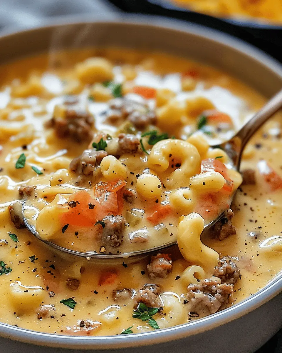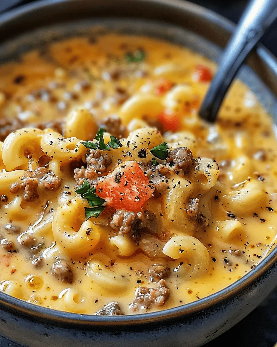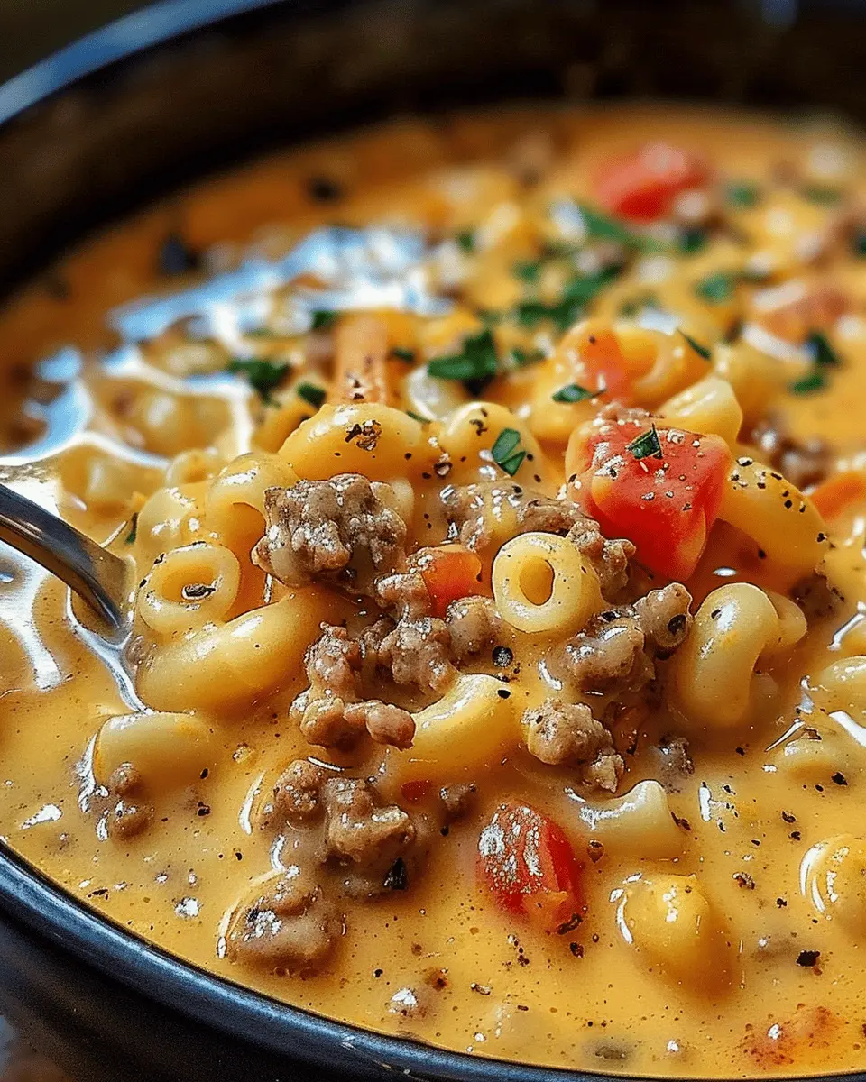 A comforting soup that combines the flavors of a classic cheeseburger with the ease of one-pot cooking, perfect for busy weeknights.