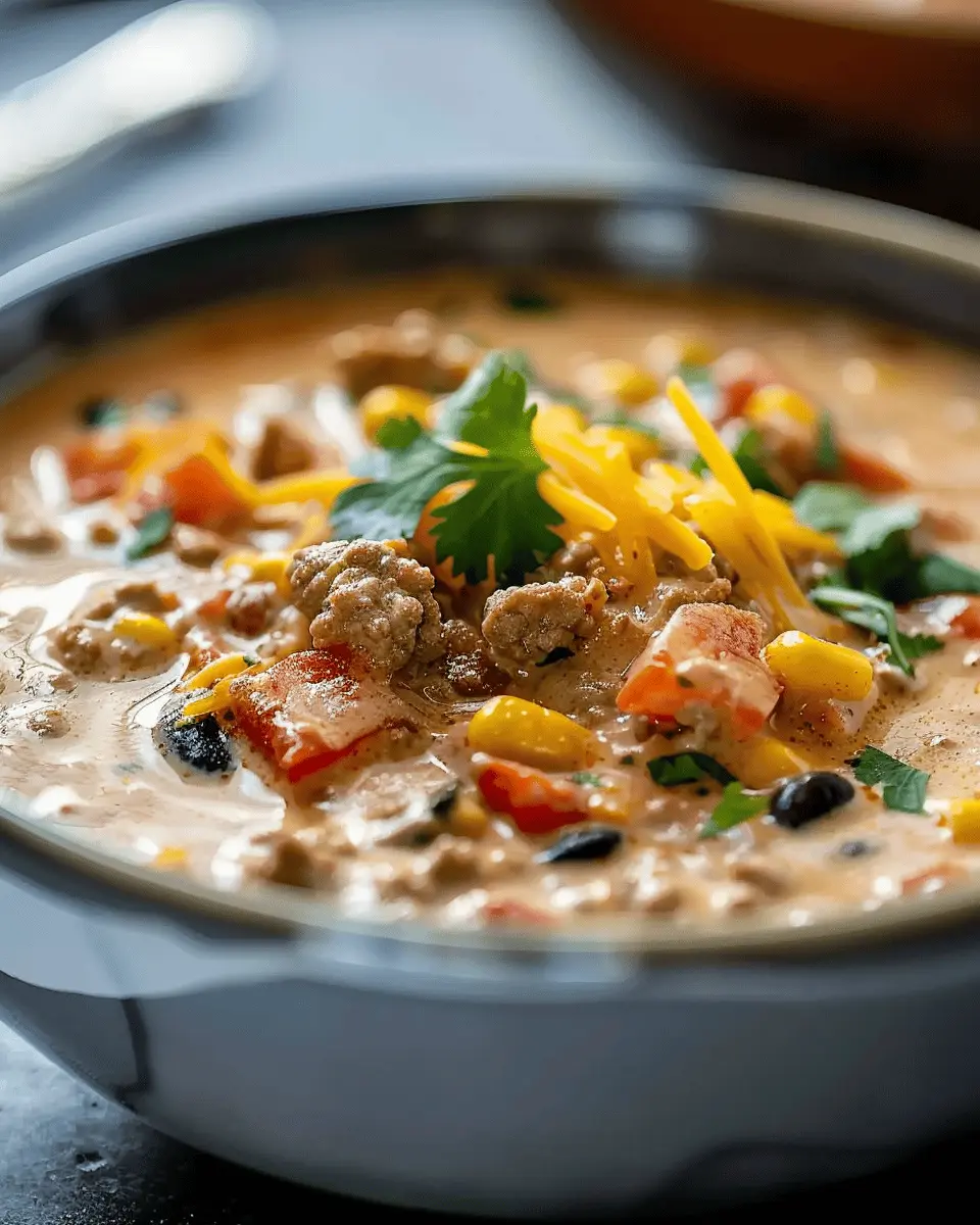 Keywords: easy soup recipes, high protein, creamy taco soup, family meal