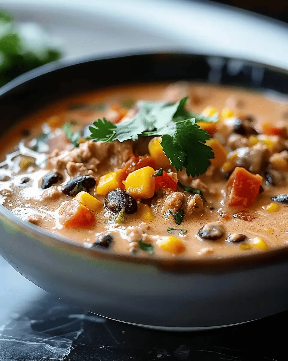 Bread is always a hit—think crusty ciabatta or a soft artisan roll. These provide a perfect vessel for scooping up all that delicious soup. For a lighter option, a fresh green salad with a zesty vinaigrette complements the richness of the soup beautifully. As for toppings, think outside the box! A dollop of sour cream, fresh cilantro, and a sprinkle of crispy turkey bacon or chicken ham will add layers of flavor and texture.