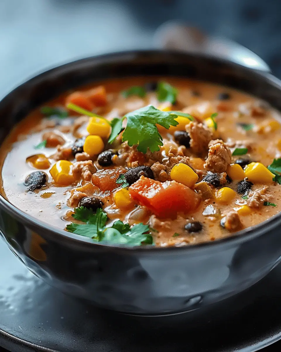 Keywords: easy soup recipes, high protein soup, creamy taco soup