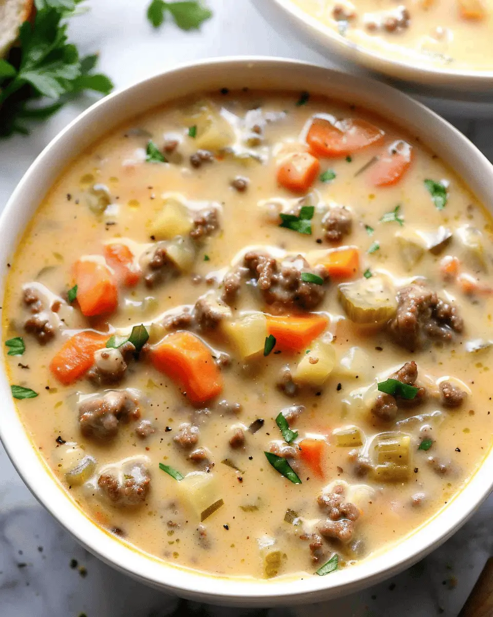 Creating a delightful cheeseburger soup at home is not only fulfilling but also a fun cooking experience! This easy soup recipe is perfect for young professionals who crave comfort food after a long day. Let’s dive into the step-by-step process to ensure your soup is nothing short of amazing.