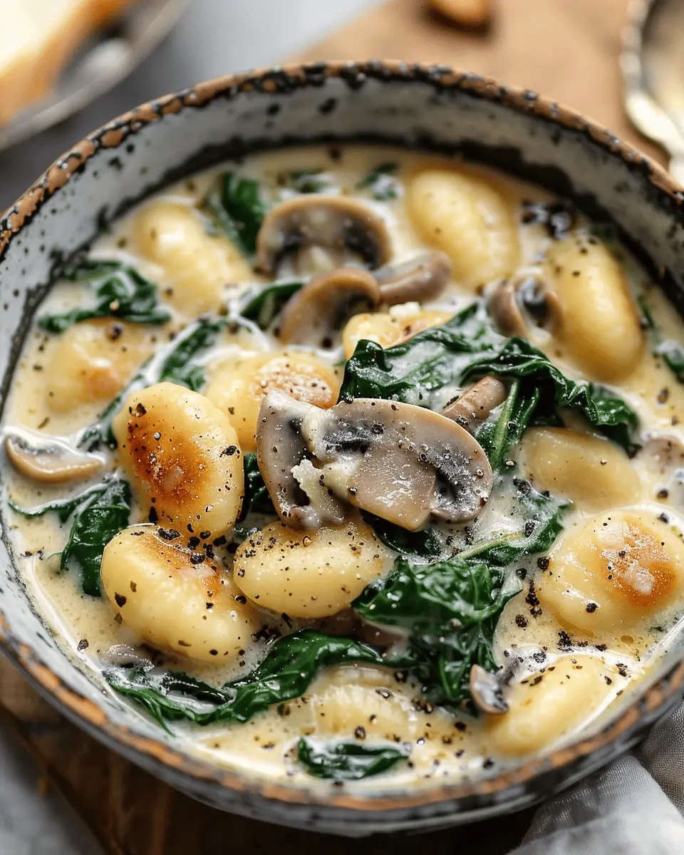 And there you have it! Your Creamy Spinach and Mushroom Gnocchi Soup is now ready to serve. Pair it with fresh bread or a side salad for a complete meal. Enjoy!