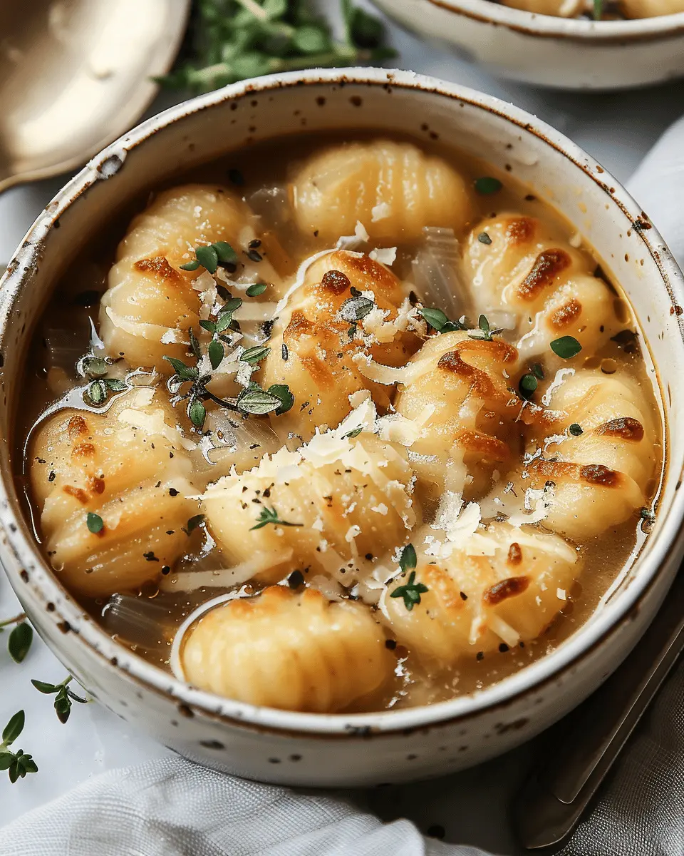Before diving into the delicious heart of your easy soup recipe, let’s ensure you have everything ready. This soup blends the delightful flavors of French onion and pillowy gnocchi, making it not just a meal but a comforting hug in a bowl. Here’s what you’ll need: