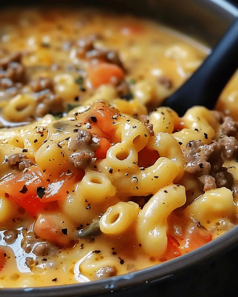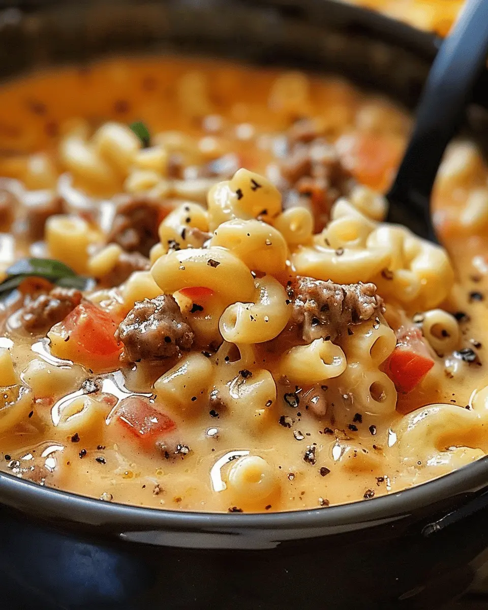 PrintEasy Soup Recipes: Indulgent One-Pot Macaroni Cheeseburger Soup Without Velveeta