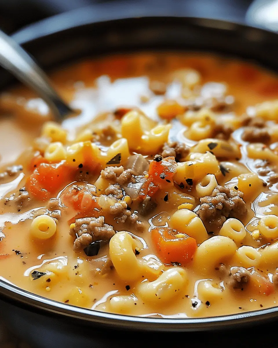 Keywords: easy soup recipes, macaroni soup, cheeseburger soup