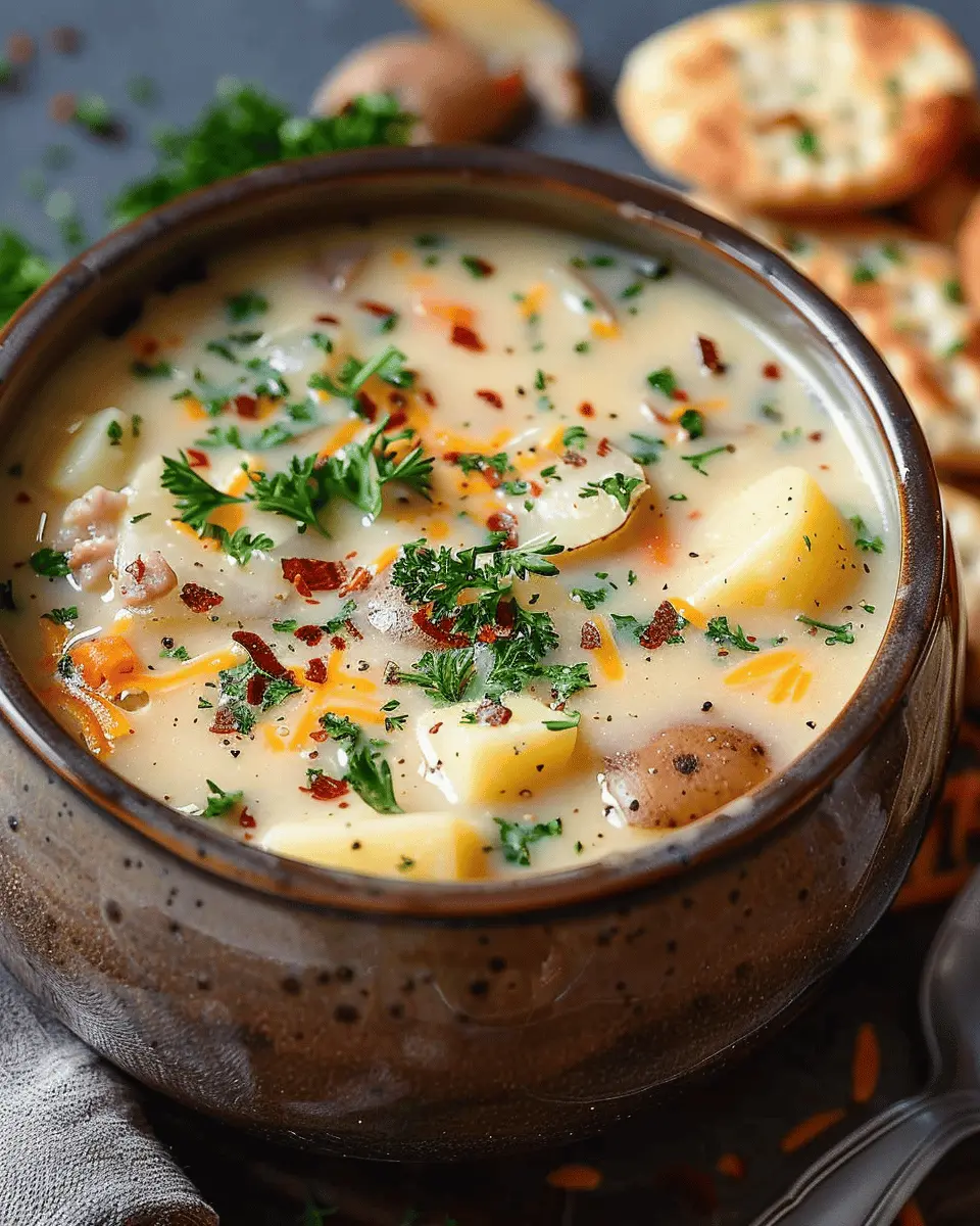 Why not give your potato soup a twist by incorporating turkey bacon? The savory crunch of crispy turkey bacon adds a lovely texture and flavor contrast. Simply prepare the creamy base as usual, then toss in some cooked and crumbled turkey bacon before serving. Not only does this variation boost the taste, but it also infuses a subtle smokiness that pairs beautifully with the creaminess of the soup. Feel free to add chives or green onions on top for an extra pop!