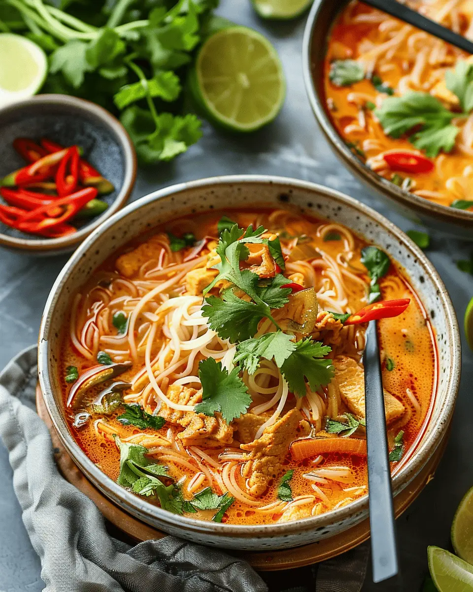 A delicious and comforting Thai red curry noodle soup that is easy to prepare and bursting with flavor.