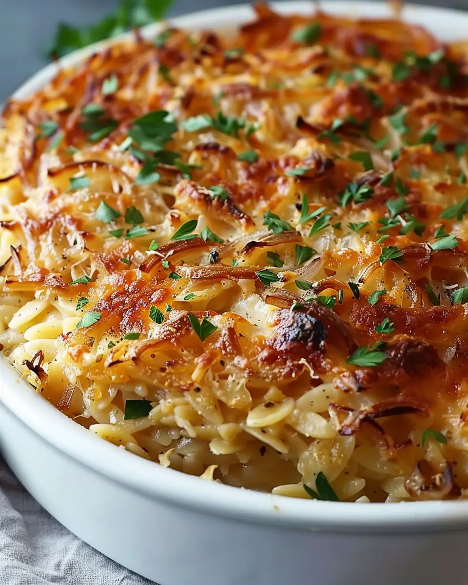 Don’t hesitate to get creative! You can customize this recipe by tossing in your favorite vegetables or even switching up the protein. Remember, cooking is all about experimentation and having fun in the kitchen. I can’t wait for you to taste this French Onion Orzo Bake, so gather your ingredients and dive in! For more inspiration and tips, check out resources like Food Network or Serious Eats. Enjoy your culinary adventure!