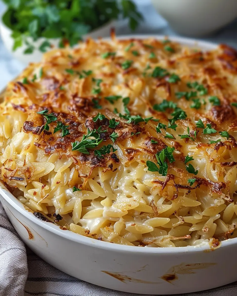For a perfectly creamy French Onion Orzo Bake, consider the following: