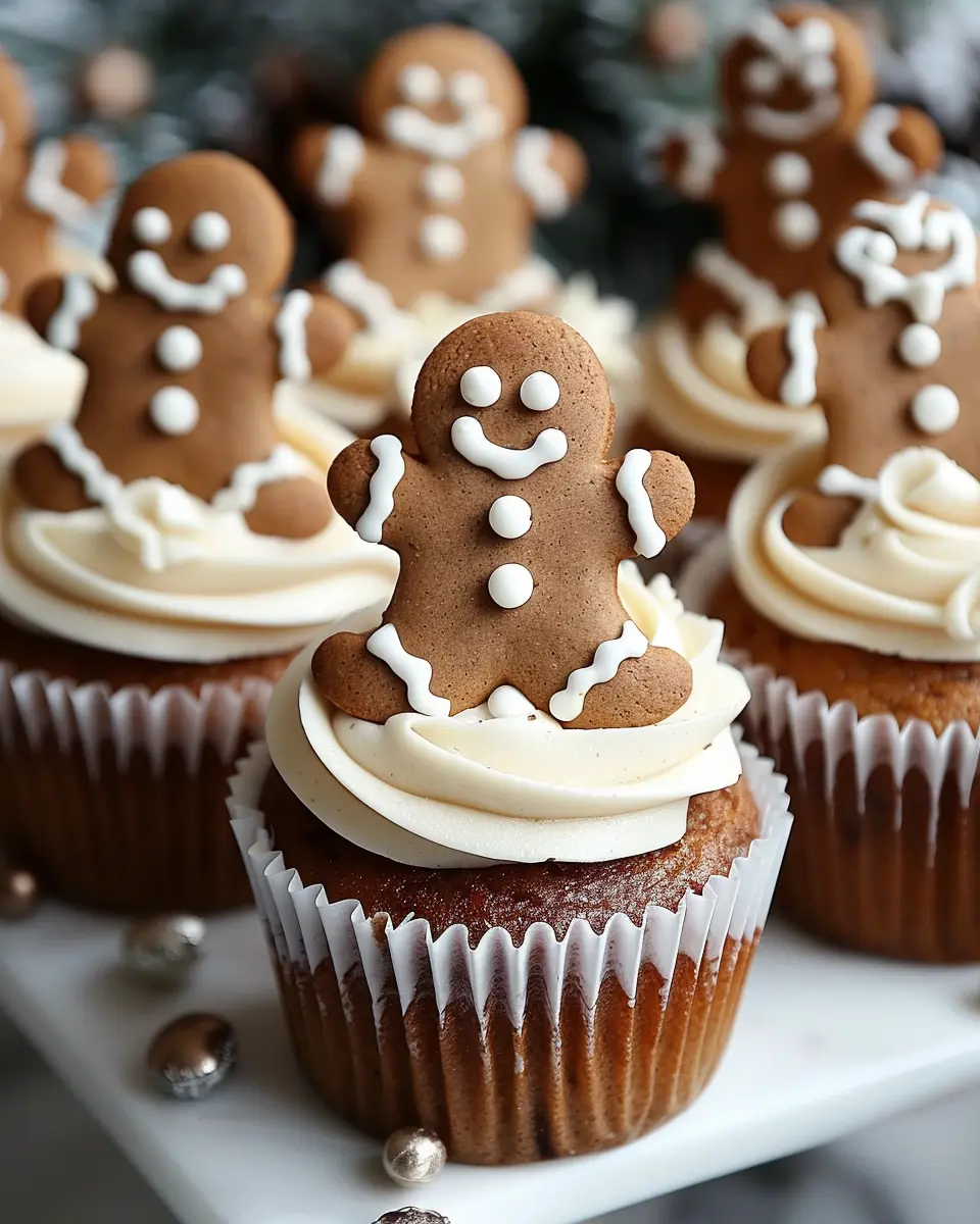 Delightful gingerbread man cupcakes perfect for the holiday season.