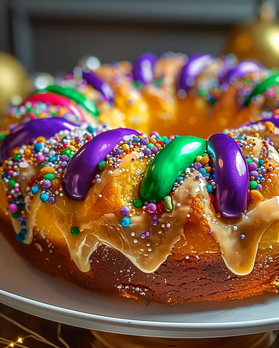 Celebrate the festive season with this delicious and traditional King Cake, perfect for joyful gatherings.