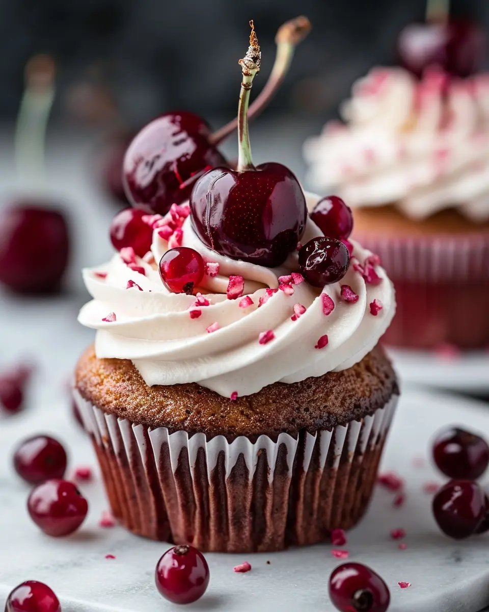 - Ingredients: Use cocoa powder in your cupcake batter and fold in chopped cherries.