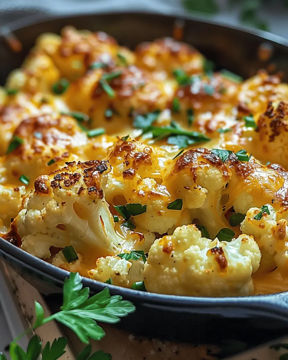 In total, you’re looking at around 40 minutes to whip up this delightful baked cheddar cauliflower. Perfect for a quick weeknight dinner or a cozy weekend meal! Just imagine serving it to friends or enjoying it solo while binge-watching your favorite series.