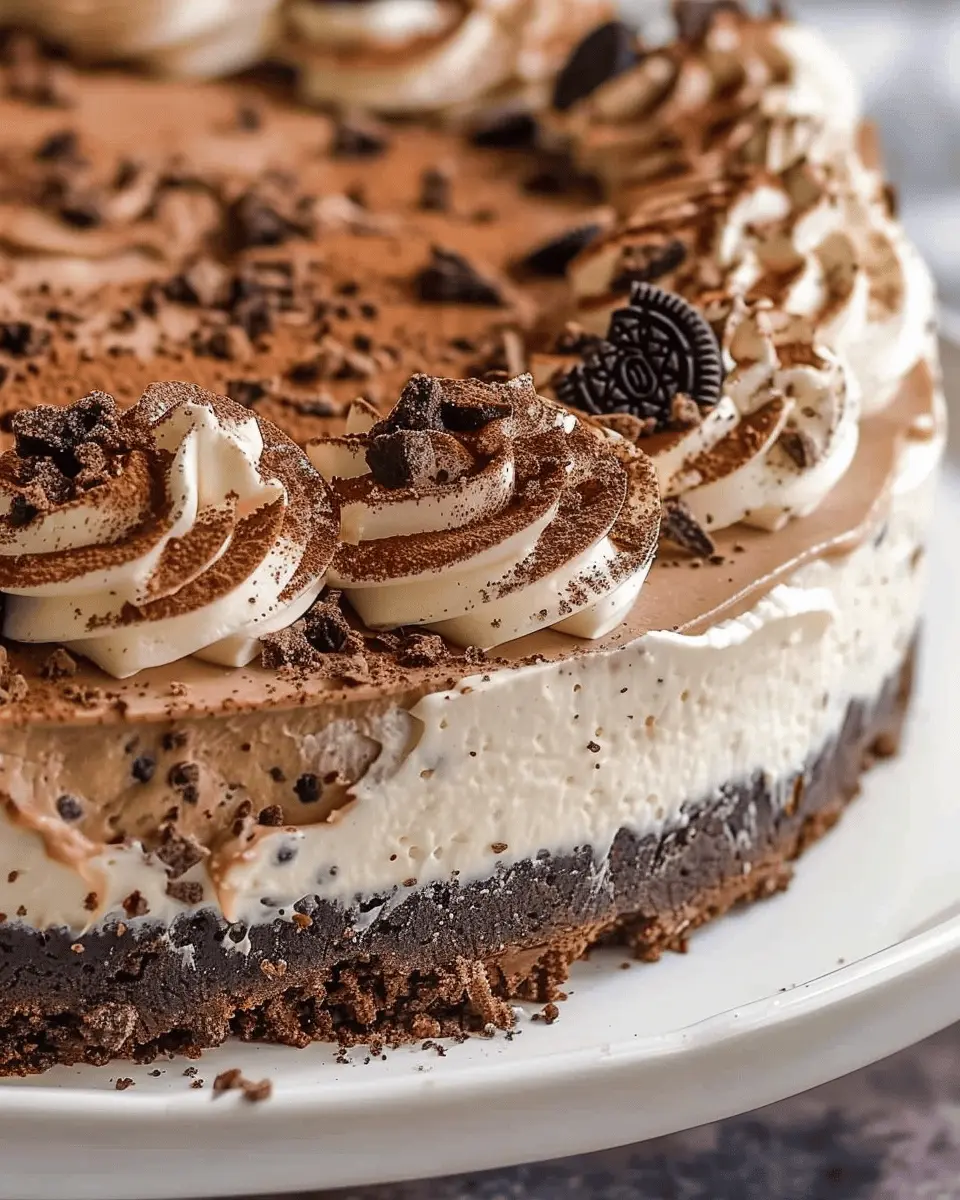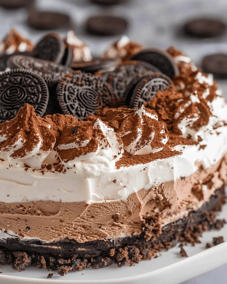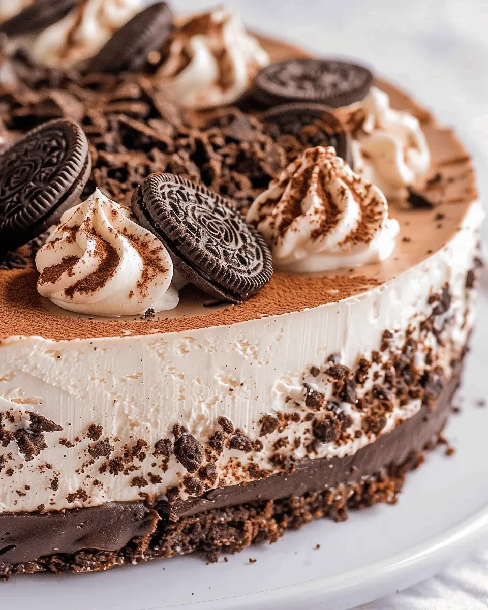 Indulge in a rich and creamy Oreo Mousse Cake, perfect for any dessert lover.